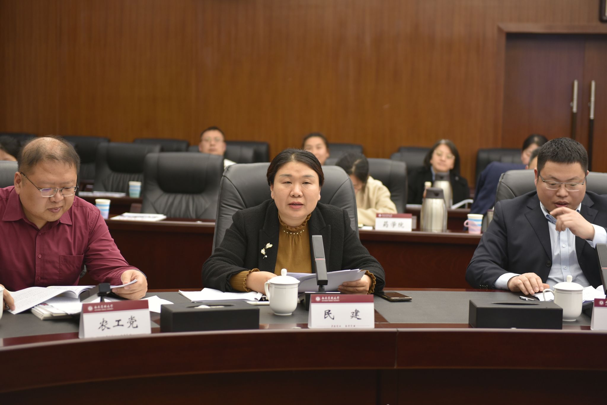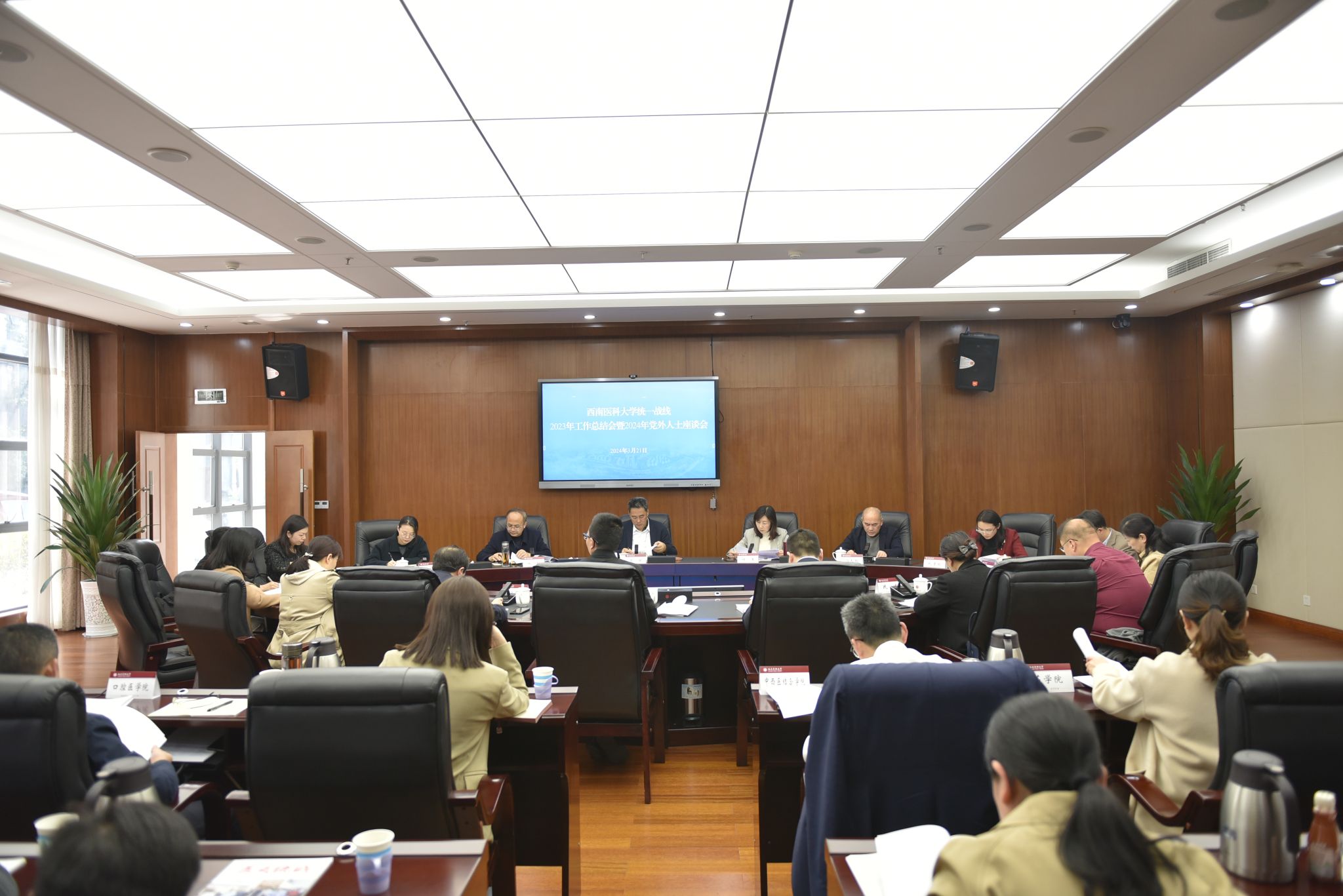 会议传达学习了全国、全省统战部长会议精神,通报了学校2023年统战工作情况,并结合上级精神部署了2024年工作。各民主党派、统战团体就思想引领、自身建设、咨政建言、社会服务等方面作2023年工作交流。