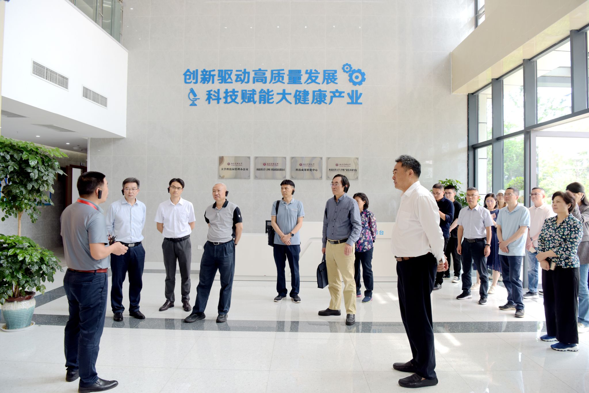 调研组一行实地走访了大学科技园,听取了我校大学生创新创业实践活动工作情况汇报,深入了解学校发挥医学专业特色、服务区域经济社会发展、促进大学生就业创业等情况。深入四川奕鑫体育文化发展有限公司、泸州兴蓝医学科技合伙企业(有限合伙)、四川西心海豚智慧科技有限责任公司等入园企业,听取了企业负责人关于强化校企合作、带动学生实习实践、吸收毕业生就业及社会服务等情况汇报。郑学炳与大家深入交流,鼓励大家再接再厉,在将企业做大做强的同时,努力回馈社会、回馈学校,积极推动英国上市公司365的大学生创新创业教育工作。