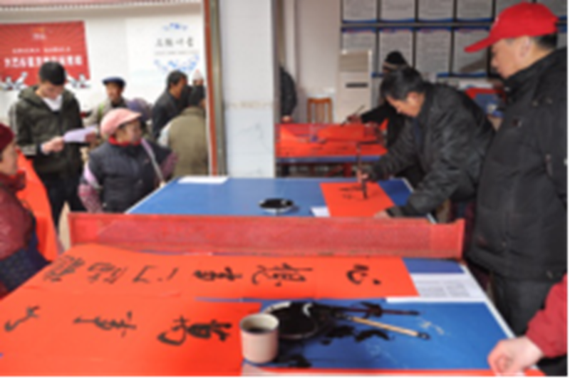 活动邀请了泸州市书法家协会6名书法家,共同义务书写春联400余幅,福字200余张。受到当地村民的喜爱。