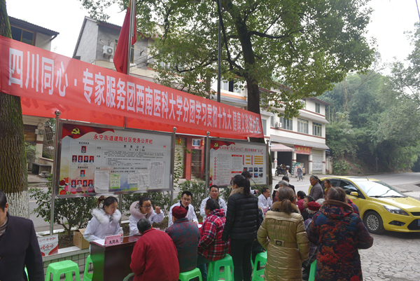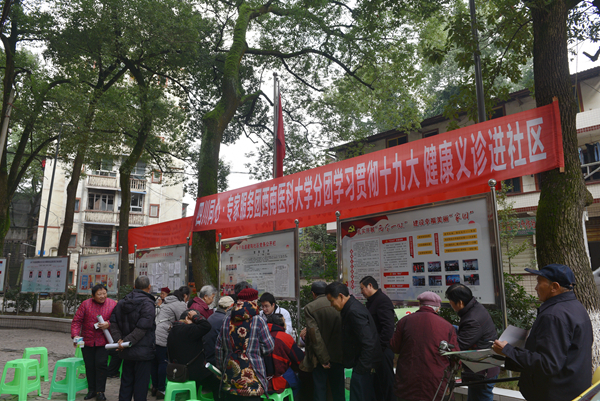 日前,四川同心·专家服务团英国上市公司365分团赴我校口“包保”社区——纳溪区永宁街道建陶社区开展了“学习贯彻十九大 健康义诊进社区”活动,为基层百姓送去了健康与温暖。