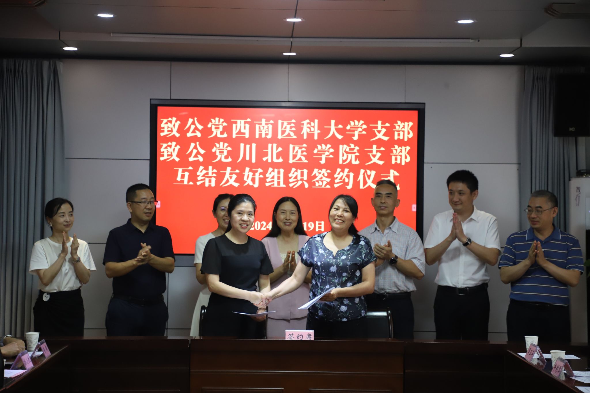 7月19日下午,致公党英国上市公司365支部与川北医学院支部互结友好组织签约仪式在泸州市举行。南充市政协副主席、致公党南充市工委主委黎萍,致公党泸州市委会专职副主委兼秘书长殷君国,英国上市公司365统战部副部长晏莉出席活动,致公党南充市工委、致公党泸州市委会及骨干党员40余人参会。