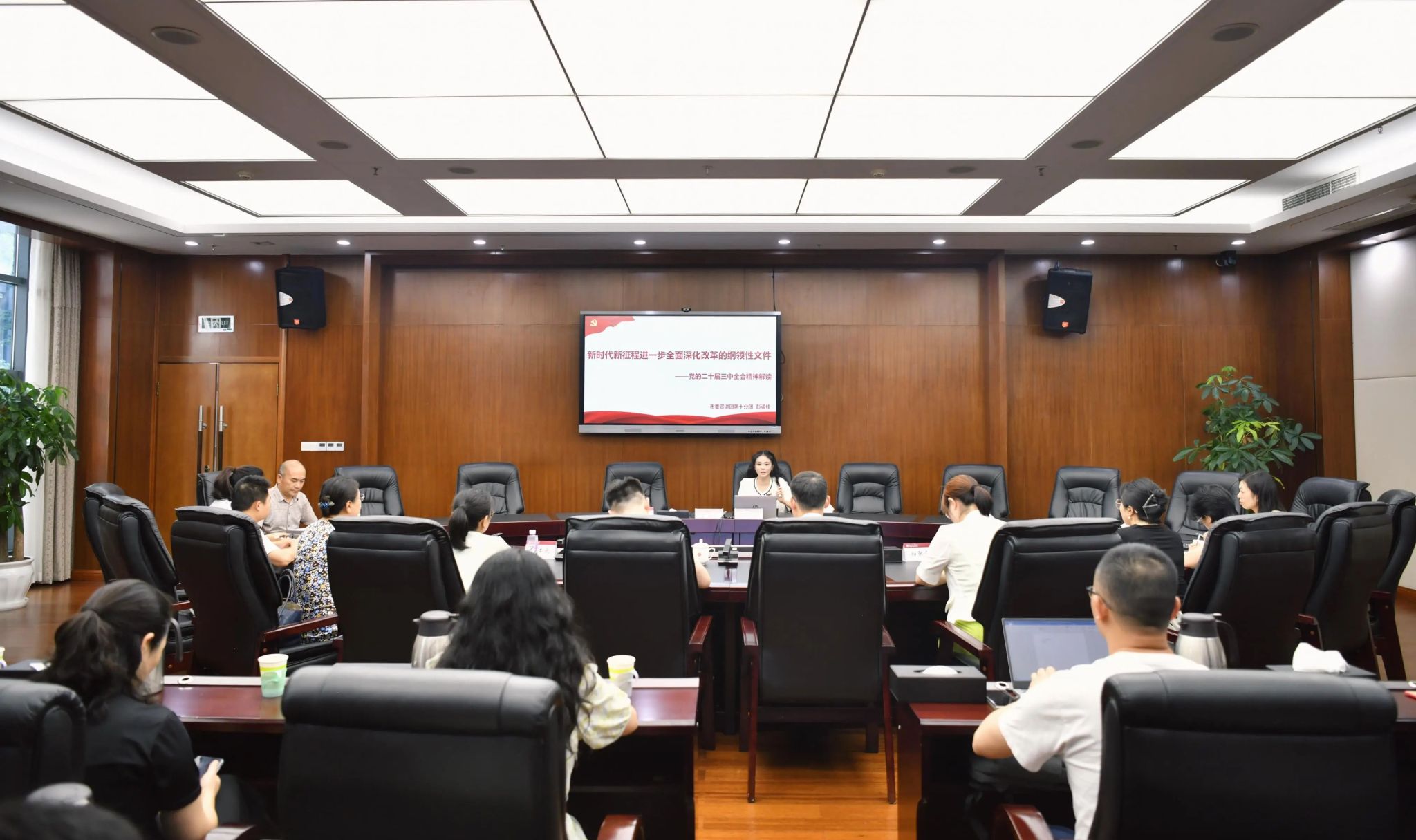会议邀请到泸州市委宣讲团第十分团成员、学校马克思主义学院彭鎏佳副教授以“新时代新征程进一步全面深化改革的纲领性文件”为题,宣讲中共二十届三中全会精神。彭鎏佳从深刻把握全会的重大意义,深刻把握进一步全面深化改革的总目标、重大原则、重大举措等方面作了深入解读。