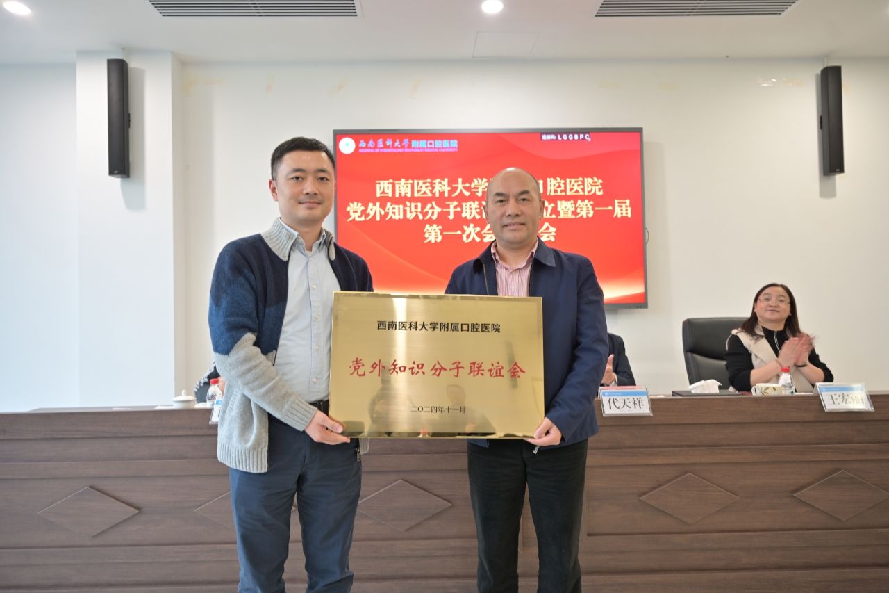 会上,冯天明为附属口腔医院知联会授牌。吴双江博士作为附属口腔医院知联会代表接受授牌并作表态发言。他表示,知联会全体成员将加强学习,积极履职,团结协作,勇于创新,不断开创知联会工作的新局面,为学校、附属口腔医院高质量发展贡献知联会力量。