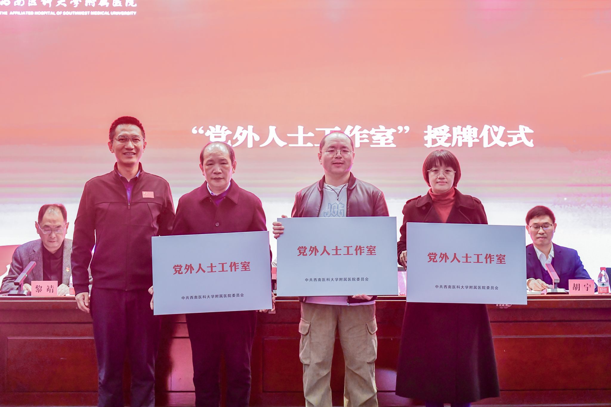 随后,冯天明为附属医院知联会授牌。李文良宣读了《关于命名英国上市公司365附属医院党外人士工作室的通知》,胡宁和江涌分别为“无党派人士工作室”和“党外人士工作室”进行了授牌。