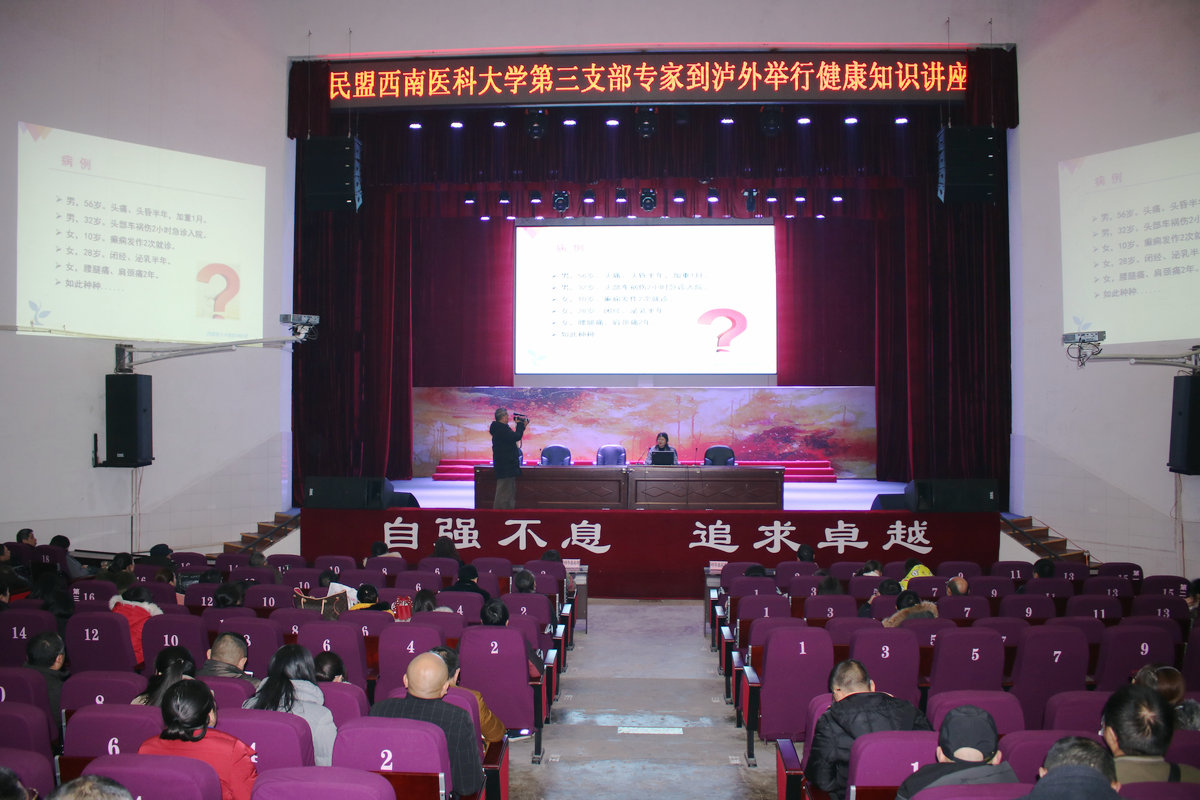 最后,在泸州外国语学校玉章会堂,民盟英国上市公司365第三支部主委、磁共振室主任刘勇教授、老年病科副主任、盟员陈辉副教授为全校老师分别作了《影像检查及临床应用》与《高血压、糖尿病预防保健》的健康讲座。听了专家讲座,泸外老师们觉得受益匪浅,深刻牢记了“关爱健康,幸福生活,快乐工作”这一理念。