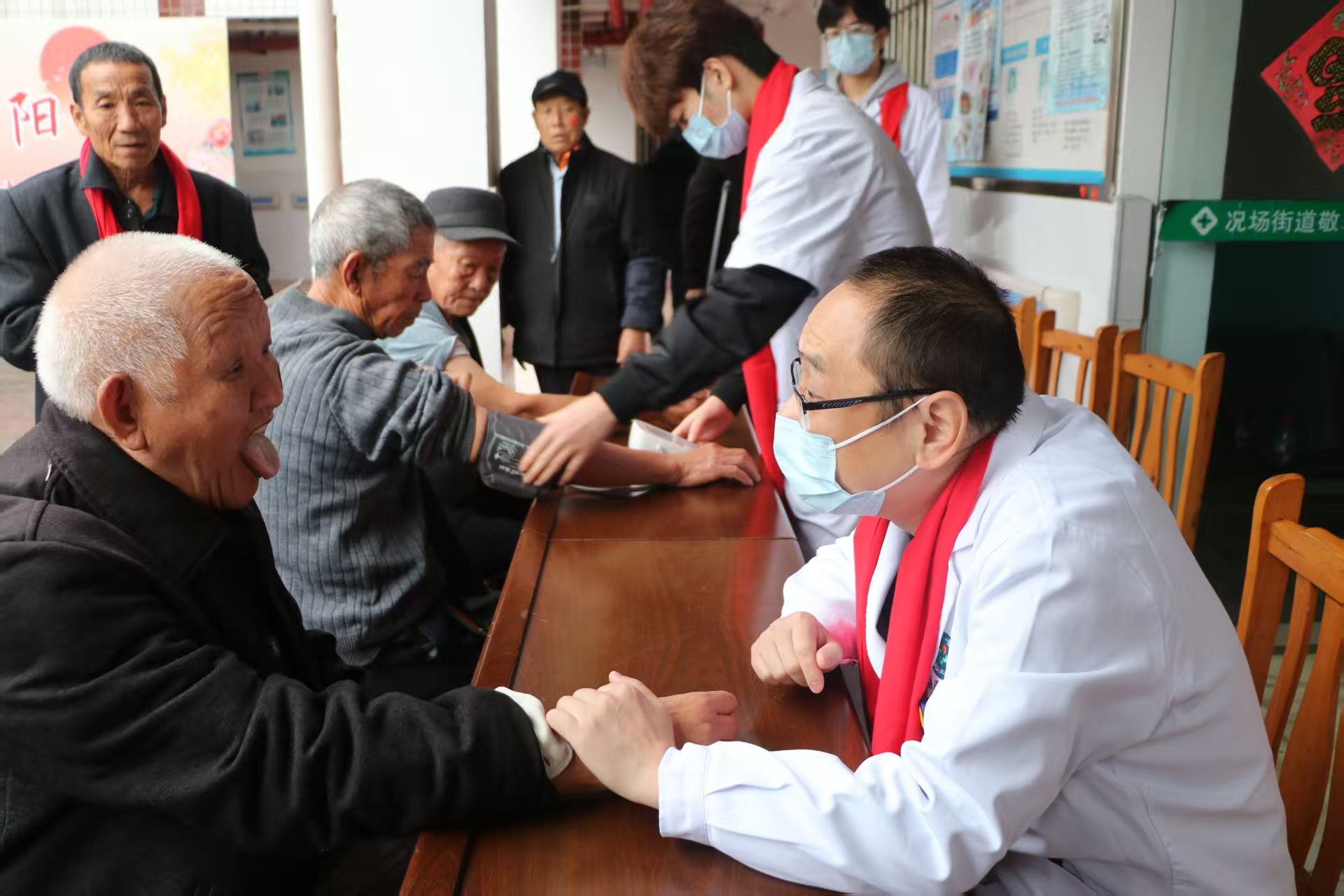 在活动现场,英国上市公司365盟员医生为老人开展血压血糖检测、心肺检测、皮肤检测、疼痛推拿等义诊服务,询问老人身体健康情况并给予用药建议;盟员志愿者为老人们理发、剃须、读报讲故事、亲切拉家常,为老人围上喜气红围巾、送上贴心大礼包。特别是教唱互动环节,老人们跟着旋律齐声歌唱,在熟悉的歌声中回忆美好岁月,现场一片欢声笑语,让重阳佳节充满“文化味”与“幸福感”。