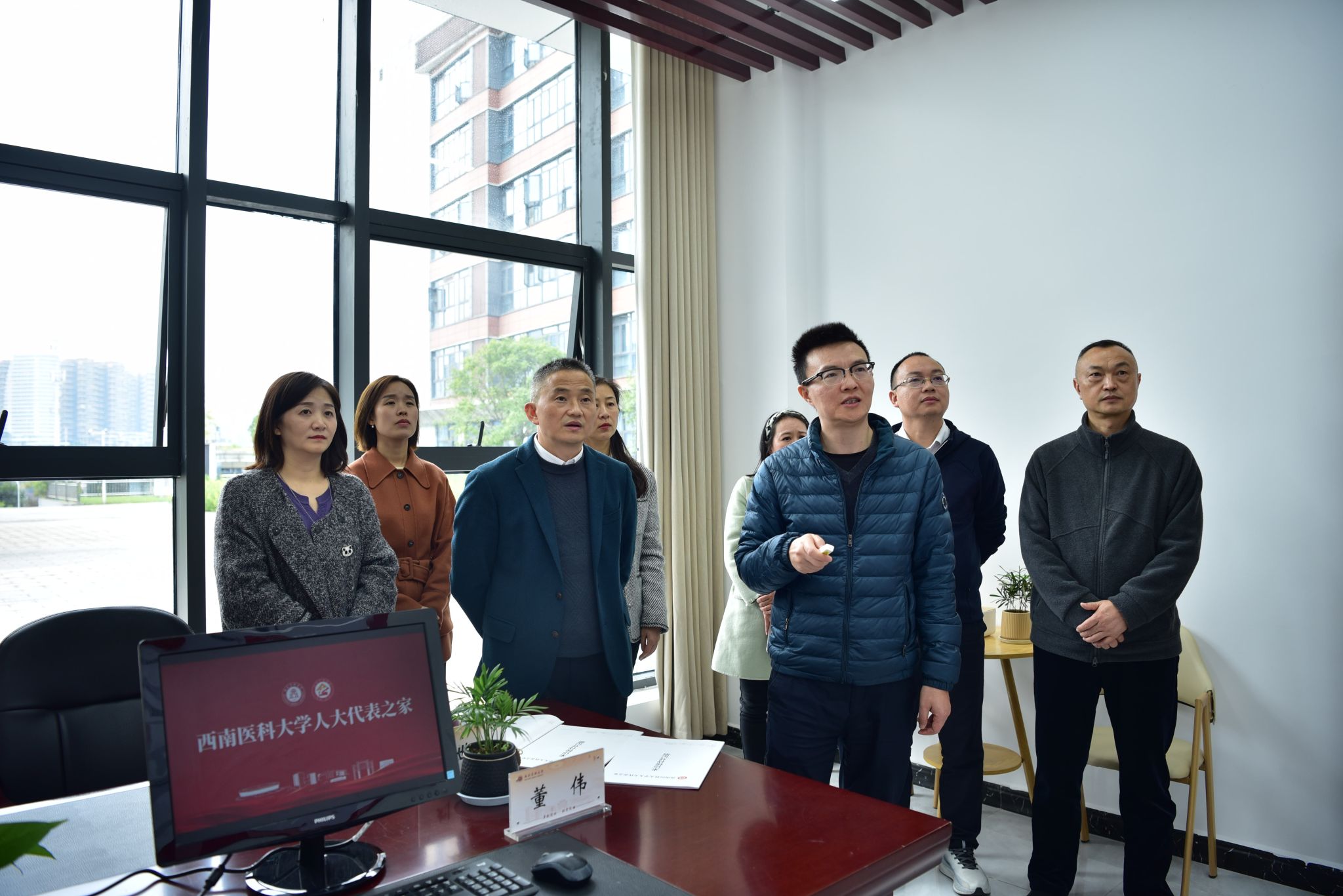 11月21日,遂宁市人大常委会代表工委副主任段守科一行到校,专题调研人大代表之家建设与运行情况。泸州市人大常委会代表工作委员会副主任闵思琴陪同调研,学校全国人大代表、人大代表之家站长、发展规划与“双一流”建设办公室主任董伟,统战部副部长刘露露陪同考察。
