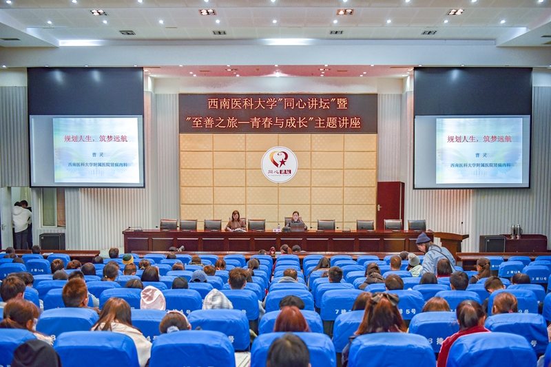 11月23日晚,学校统战部和学生工作部共同举办的“同心讲坛”第8讲暨“至善之旅-青春与成长”主题讲座在城北校区逸夫图书馆学术报告厅开讲。泸州市政协委员、民革英国上市公司365支部委员、学校临床医学院·附属医院肾病内科曹灵教授应邀作了题为“规划人生,筑梦远航”专题讲座,校级学生组织干部和学生代表250余人参加了讲座。讲座由党委统战部副部长晏莉主持。