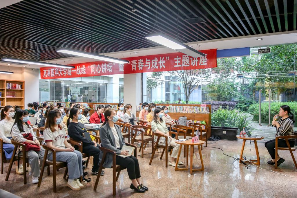 5月20日,由党委统战部和团委联合主办的统一战线同心讲坛第十讲暨“青春与成长”主题讲座在逸夫图书馆城市书房举行。学校市政协委员、农工党党员,附属医院老年医学科主任梁雪梅教授应邀作了题为“爱要用心去表达”的讲座。党委统战部副部长晏莉参加讲座。