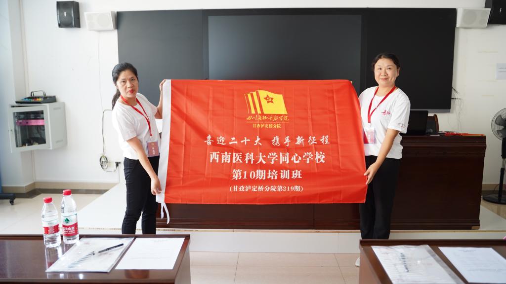 开班式上,举行了班旗授予仪式,全体学员齐唱国歌。晏莉介绍了同心学校基本情况并作培训动员讲话。她指出,当前,省第十二次党代会胜利召开,党的二十大即将召开,学校和附属医院统一战线紧扣“喜迎二十大、携手新征程”主题开展沉浸式党史学习教育,既是落实上级部署要求,又是凝聚学校事业发展合力的有力举措。她希望,全体学员要学习伟大长征精神,实现思想认识再提升;要汲取伟大精神力量,奋楫争先建功新时代;要珍惜培训学习机会,确保培训效果高质量。四川长征干部学院甘孜泸定桥分院校务委员德吉央金致欢迎辞,并介绍了泸定县及分院的概况。