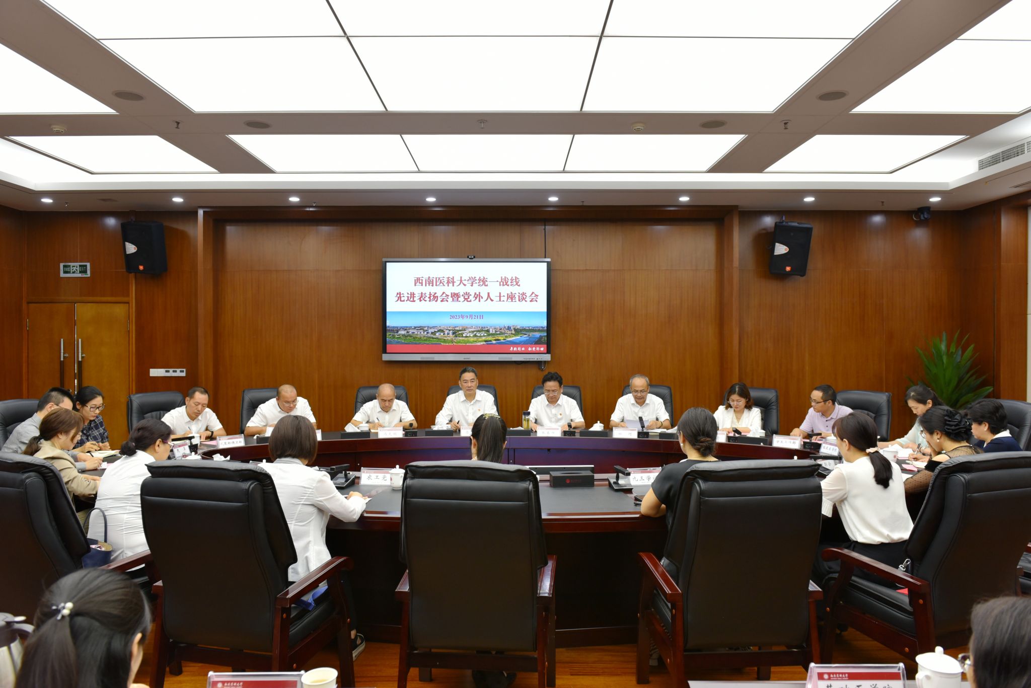 9月21日下午,学校统一战线表扬会暨党外人士座谈会在城北校区一会议室召开。校党委书记廖斌,党委副书记、校长张春祥出席会议并讲话,学校党委统一战线工作领导小组部分成员,全国、省、市人大代表、政协委员,各民主党派基层组织、统战团体负责人及代表共40余人参加了会议。会议由党委常委、统战部部长柏珂主持。