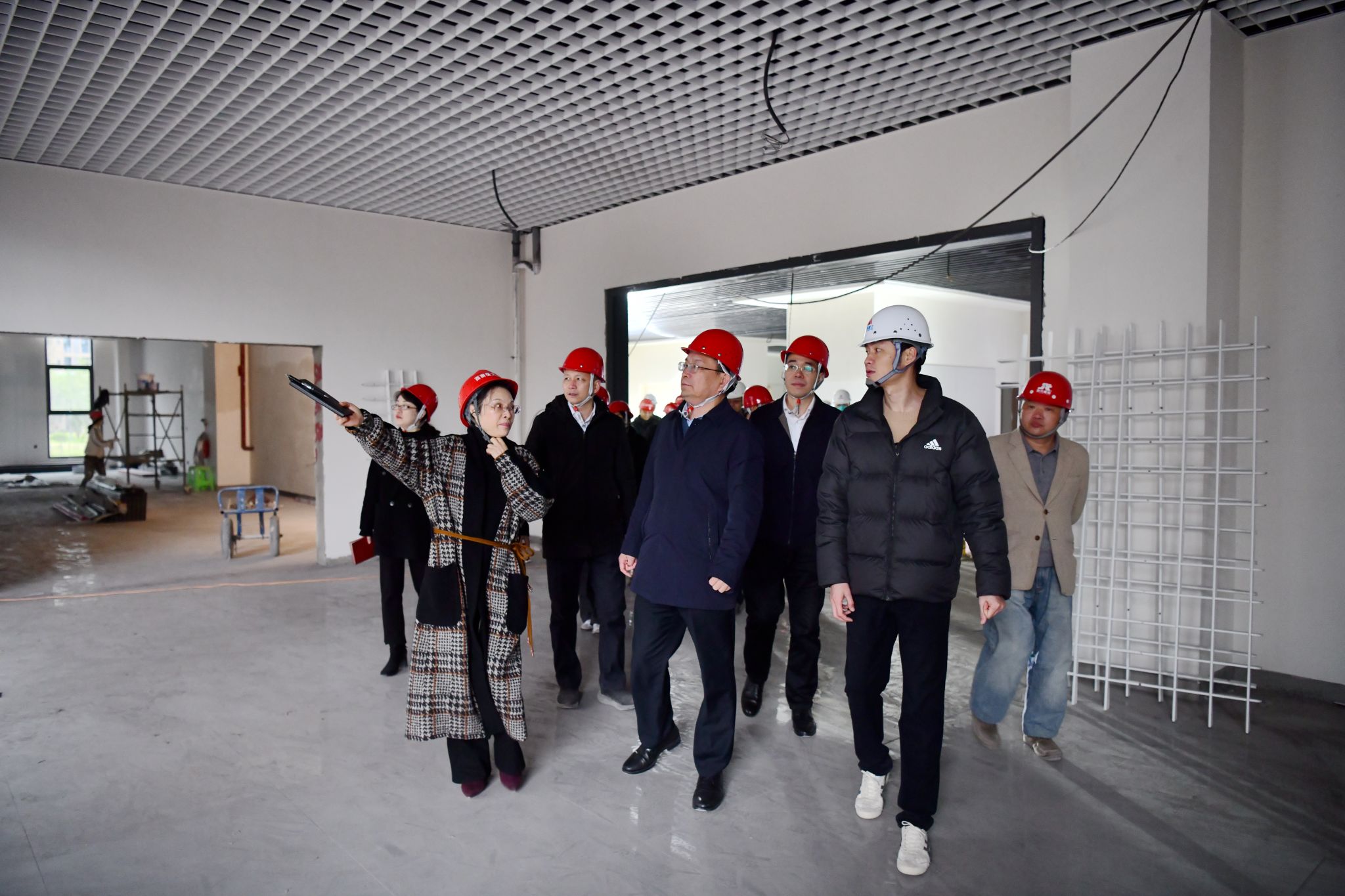 张春祥一行重点视察了入口大厅、医学博物馆、急救技能实训室、模拟手术室等功能房间,听取了项目进展情况的具体汇报,了解项目推进过程中存在的困难和问题,并就安全生产、项目进度、周边环境、整体工作统筹等方面提出了指导意见。
