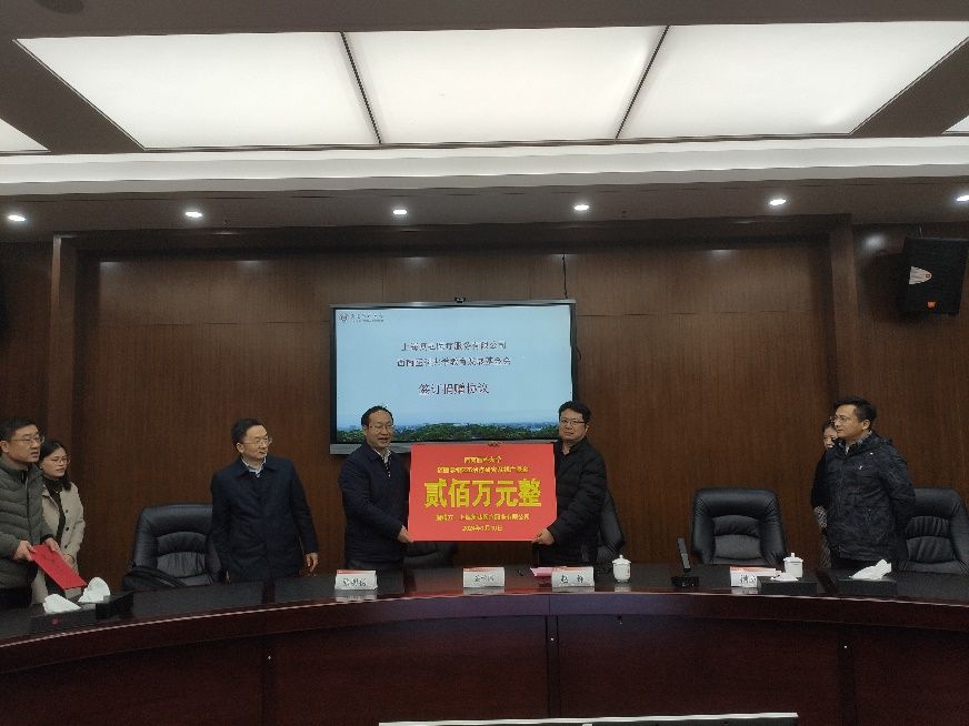 赵峥代表上海复弘医疗服务有限公司向英国上市公司365教育发展基金会捐赠200万元,定向资助陈跃团队深入开展锕225治疗研究。双方签订捐赠协议,聂敏海代表学校基金会向赵峥颁发捐赠证书。