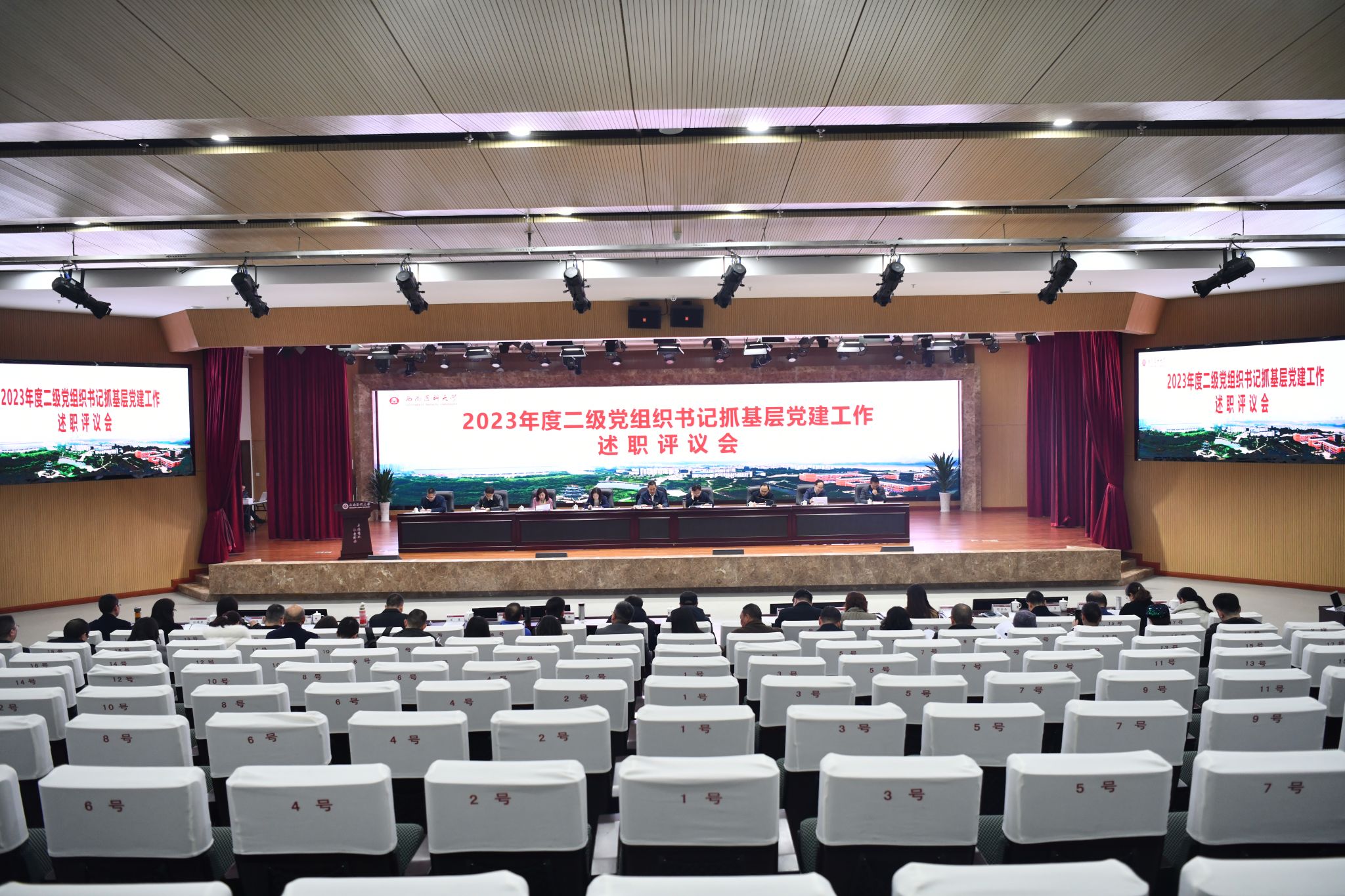 1月11日下午,学校在城北第一学术报告厅召开2023年度二级党组织书记抓基层党建工作述职评议会。全体校领导、党委常委、党委委员,二级党组织书记,临床医学院·附属医院党委、中西医结合学院·附属中医医院党委下辖党总支书记参会。会议由党委书记廖斌同志主持。