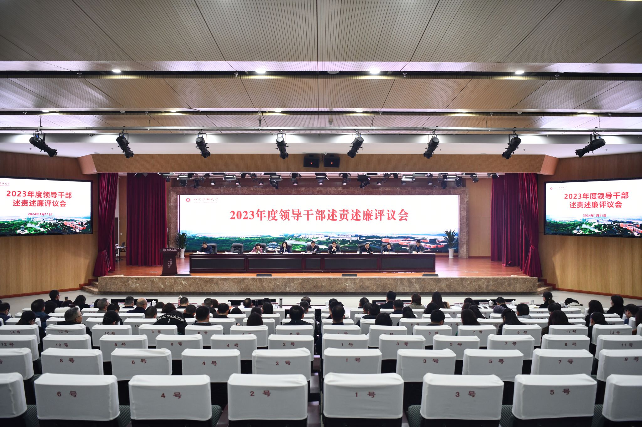 为充分发挥述责述廉导向作用,全面压实“一把手”政治责任,1月11日下午,2023年度领导干部述责述廉评议会在城北校区第一学术报告厅召开。党委书记廖斌出席会议并讲话。驻校纪检监察组组长,校党委副书记、纪委书记张永红主持会议。