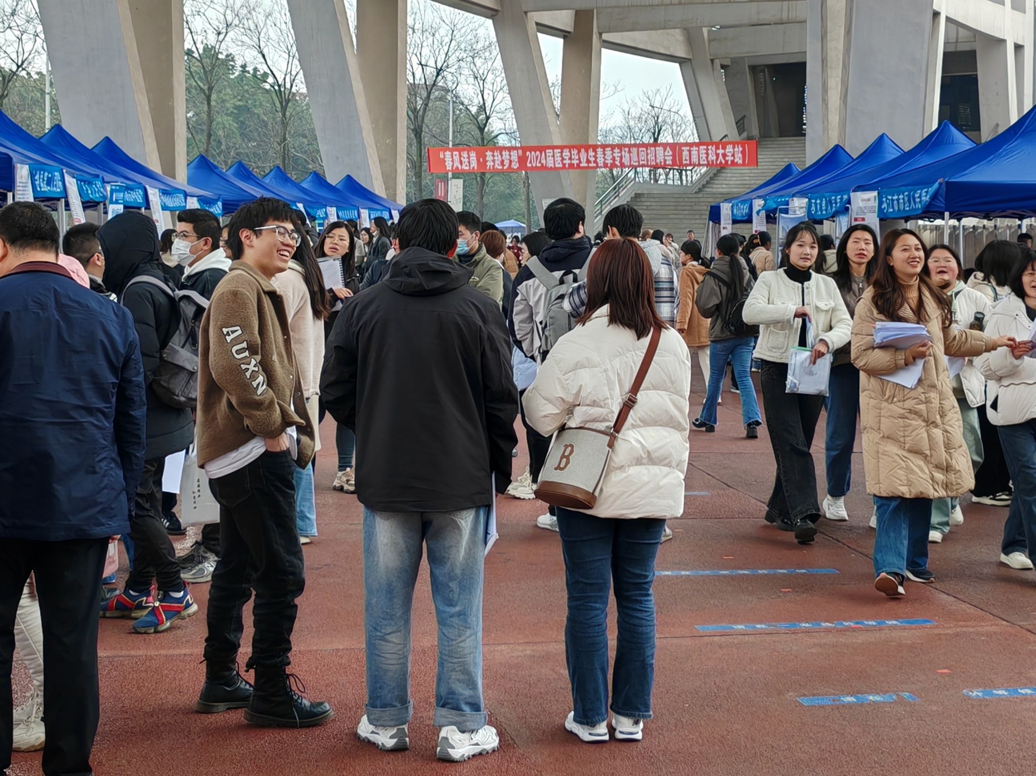 2月29日下午,学校与医招网联合开展的“春风送岗·奔赴梦想”2024届全国医学类高校毕业生春季专场巡回招聘会在城北校区奥体中心主体育馆举办。这是学校抢抓春招机遇,在开学第一周举办的中型专场招聘会。