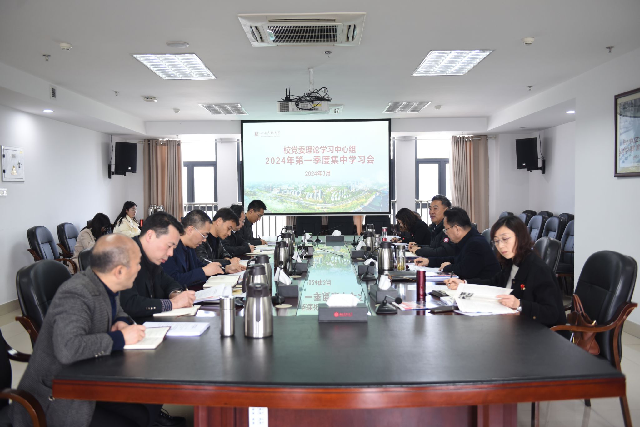 3月11日上午,校党委理论学习中心组在城北校区德诚楼621会议室召开2024年第一季度集中学习会。全体校党委理论学习中心组成员、党政办公室主任参加会议。校党委书记、中心组组长廖斌主持会议。