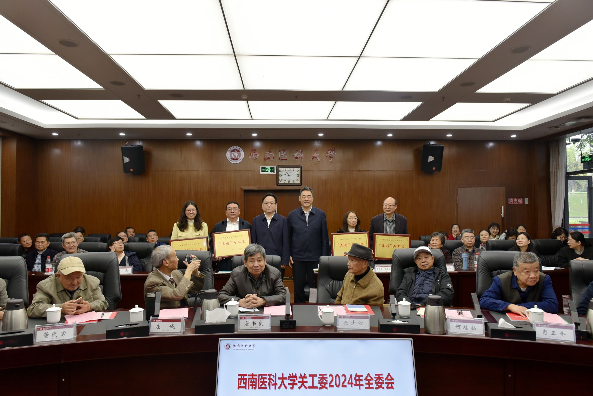 会上,关工委常务副主任程文玉领学了中国关工委主任顾秀莲同志在2024年全国关工委工作会议上的报告《在强国建设民族复兴新征程上书写关心下一代工作高质量发展新篇章》及四川省教育厅关工委《2024年工作要点》;关工委副主任石俊华宣读了对基础医学院关工委、临床医学院关工委、中西医结合学院关工委、法学院关工委授予“五好关工委”荣誉称号的文件;基础医学院党委书记阳静、临床医学院党委副书记李文良作为第三批“五好关工委”建设单位进行了经验交流发言;关工委常务副主任尹杰霖总结了关工委2023年工作并安排布置了2024年工作。