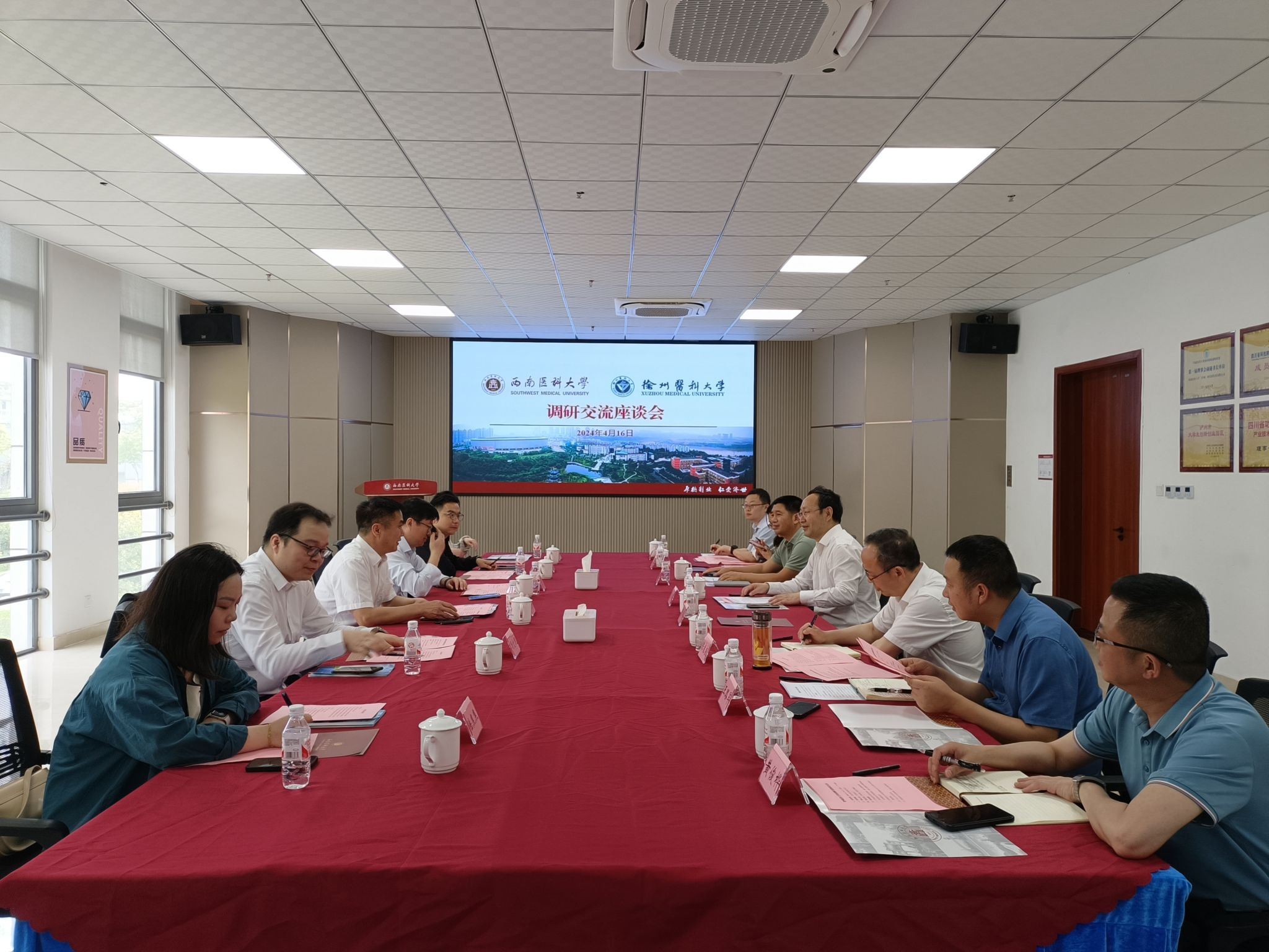 刘慎军一行先后参观考察了校史馆、国家大学科技园双创大楼,并围绕学科建设、人才培养、成果转化,以及对标建设国家大学科技园,服务区域医药健康产业发展等问题,与学校发展规划处、教务处、科技处、研究生院、资产经营总公司等相关部门的负责人进行了座谈交流。双方表示将发挥各自优势,进一步加强交流合作,促进共同发展。