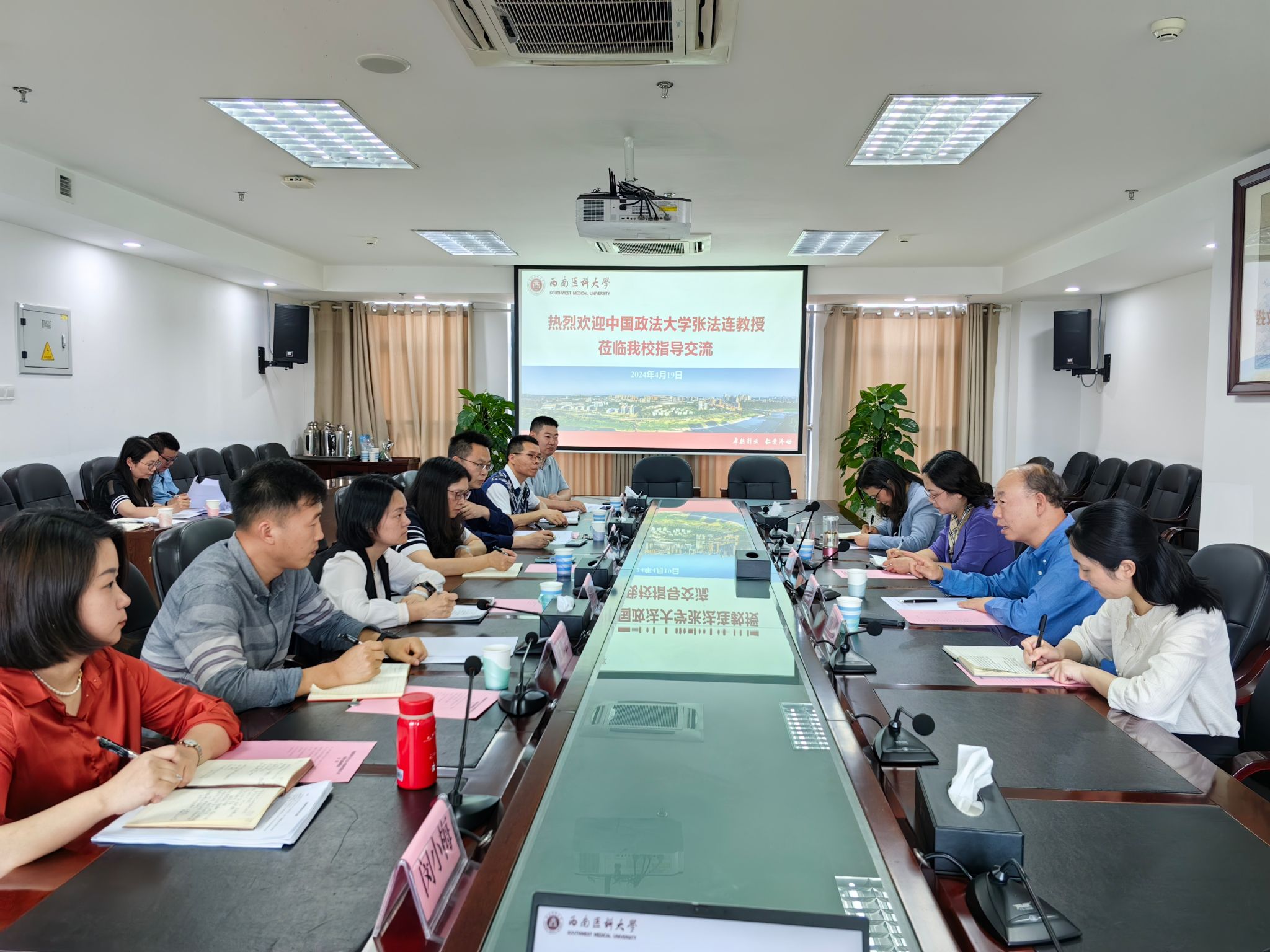 4月19日下午,学校涉外法治人才培养专题研讨会在德诚楼521会议室举行。中国政法大学外国语学院副院长、国家二级教授张法连,学校党委副书记刘毅,学校教务处副处长汤军,学校国际交流合作处处长、港澳台事务办公室主任杨珍,法学院、外国语学院党政领导,法学院国际法学、外国语学院专任教师出席此次座谈会。会议由汤军主持。