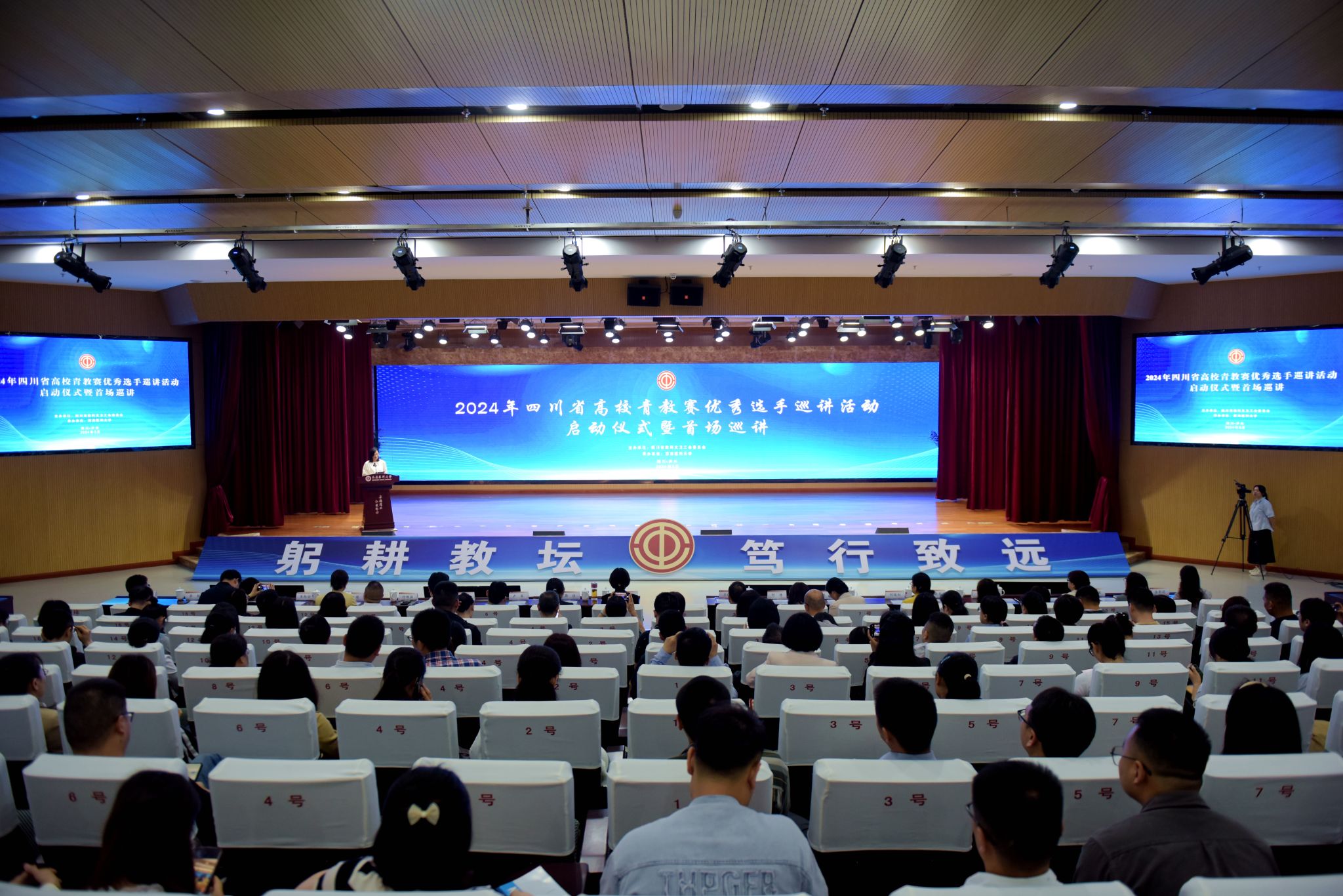 为深入学习贯彻英国上市公司365新时代中国特色社会主义思想和党的二十大精神,贯彻落实英国上市公司365总书记教师节重要指示精神、中国教科文卫体工会关于开展全国高校青教赛优秀选手巡讲活动的要求,大力弘扬劳模精神、劳动精神、工匠精神和教育家精神,进一步发挥全国、全省高校青年教师教学竞赛优秀获奖选手的示范带动作用,助力新时期教师队伍高质量发展,5月9日上午,2024年四川省高校青教赛优秀选手巡讲活动启动仪式暨首场巡讲在我校城北校区第一学术报告厅举行。