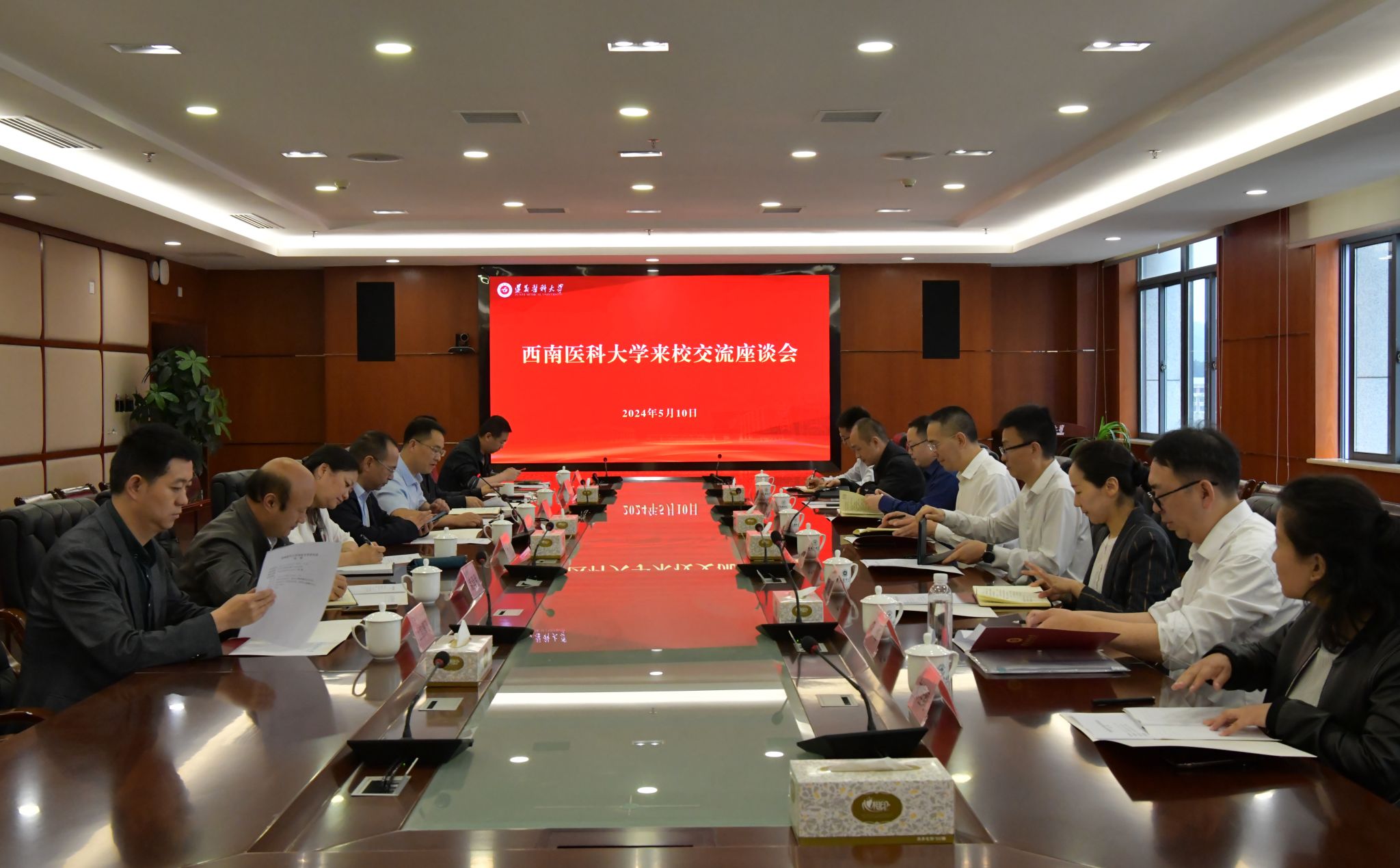 5月9—10日,学校党委常委、副校长赵领率发展规划处、研究生院、财务管理处、国有资产管理处、基建后勤处、药学院等有关部门同志赴遵义医科大学调研交流,座谈会由遵义医科大学发展规划处处长刘涛主持。