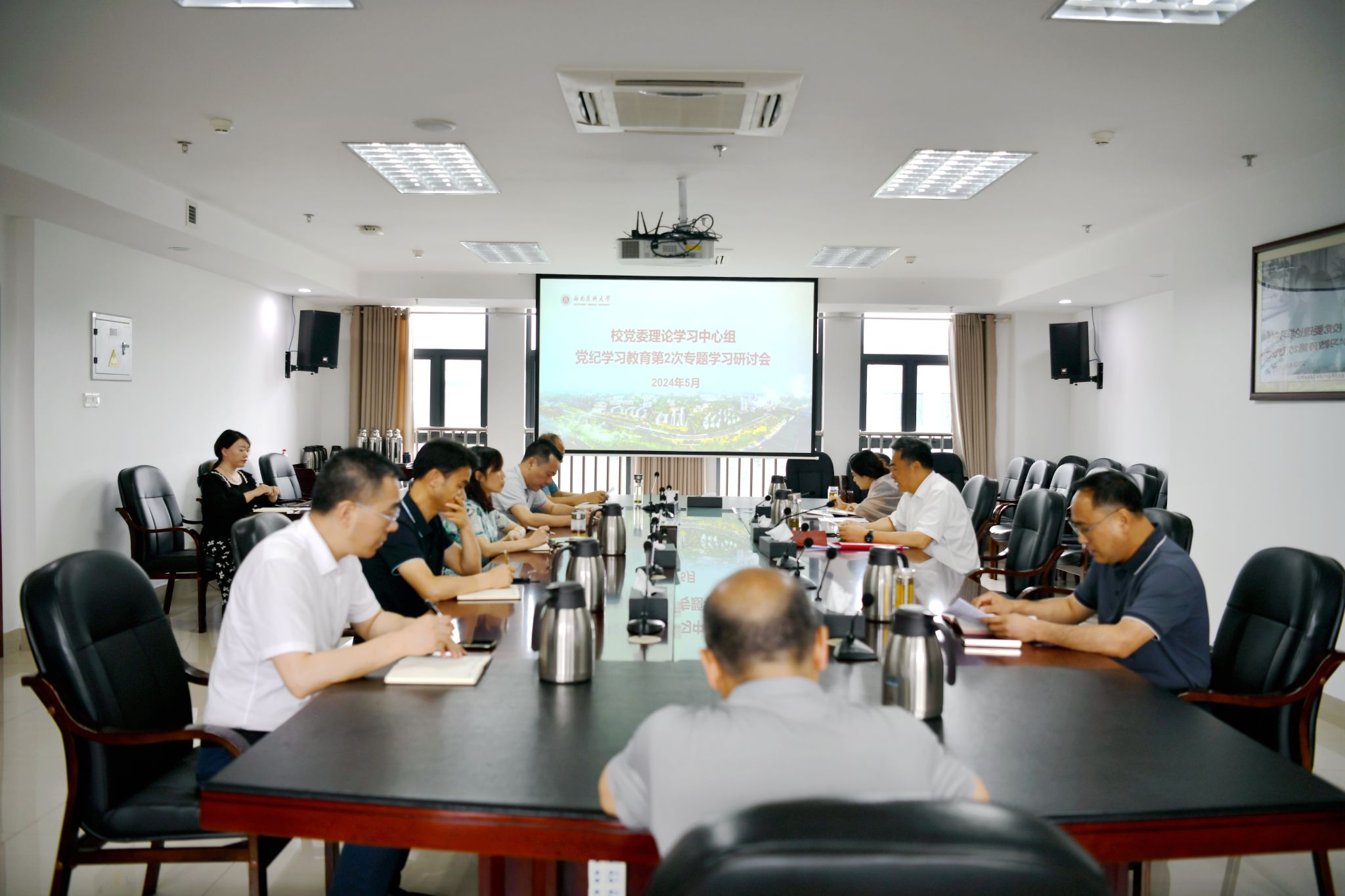 5月21日上午,学校党委理论学习中心组在城北校区德诚楼621会议室召开党纪学习教育第2次专题学习研讨会。学校党委理论学习中心组成员、党政办公室主任参加会议。党委书记、党委理论学习中心组组长廖斌主持会议。