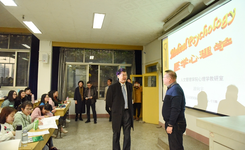 另讯 升旗仪式结束后,早上7:50分,学校党政领导廖斌、刘毅、刘广益、彭钢、何涛率领相关职能部门负责人,分别深入忠山校区和城北校区各教学楼对新学期第一天的教师、学生到课情况及教学运行情况进行检查。各二级院系党政领导对新学期教学工作高度重视,开展了本单位的教学自查工作。