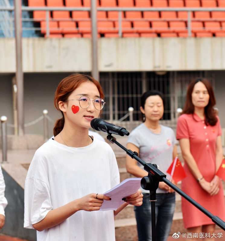 上午8:30,学校组织200名学生参加了泸州市庆祝中华人民共和国成立70周年升国旗仪式。西南医大学子身穿白大褂,与3000余名泸州社会各界代表齐聚四川警察学院足球场,唱红歌、升国旗,共同祝愿伟大的祖国生日快乐、祖国的未来更加繁荣昌盛。