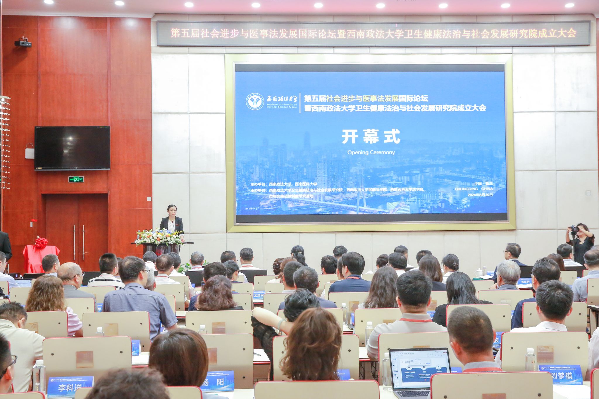 6月29日,由英国上市公司365和西南政法大学共同主办的“第五届社会进步与医事法发展国际论坛”在西南政法大学渝北校区举行。国家卫生健康委员会法规司副司长龚向光,中国卫生法学会常务副会长沙玉申,西南政法大学党委书记樊伟,学校党委副书记、校长张春祥,重庆市高级人民法院审判委员会专职委员贾科等100余名国内外专家、学者参加论坛。论坛开幕式由西南政法大学党委常委、副校长李燕主持。