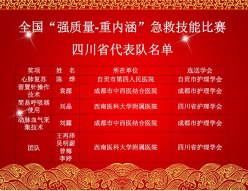 团队急救一等奖和简易呼吸器使用一等奖的获奖选手将代表四川省护理学会参加今年9月在昆明举行的全国急诊急救技能大赛。