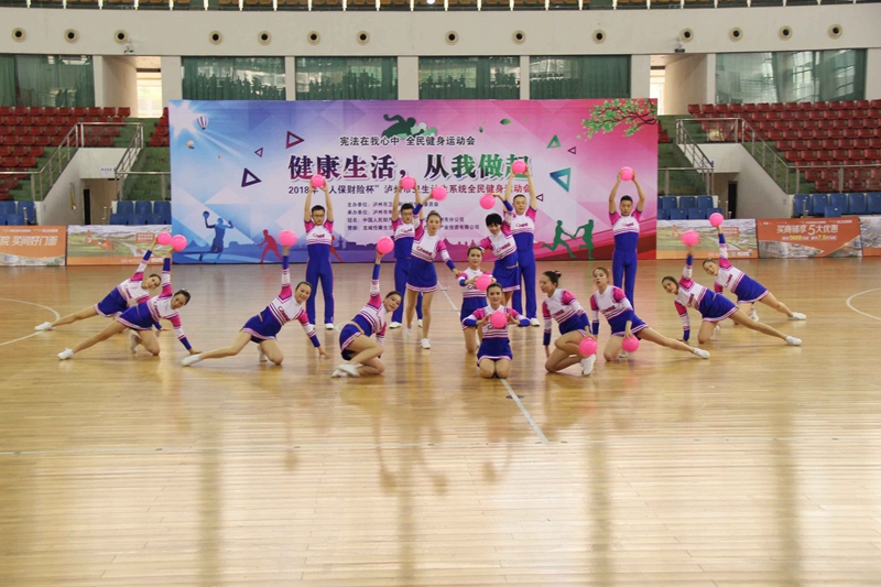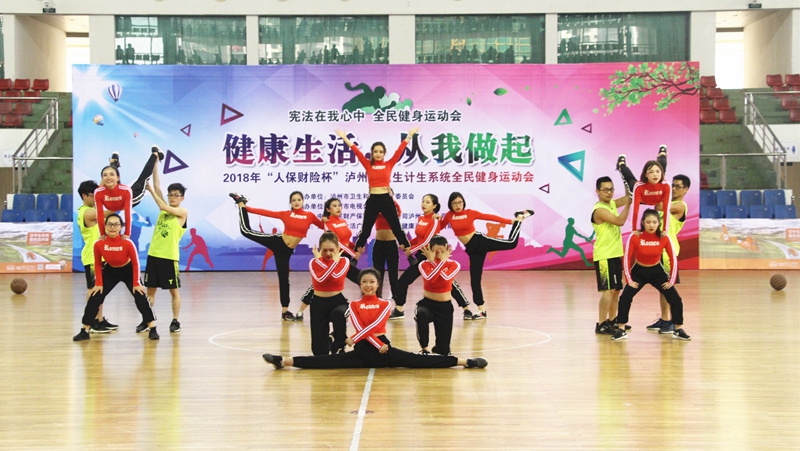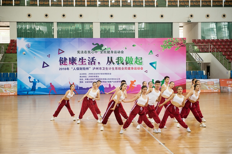 5月2日,由泸州市卫计委主办,泸州电视台承办的“健康生活 从我做起”2018年人保财险杯泸州市卫生计生系统全民健身运动会健美操比赛在城北奥体中心篮球馆开幕。