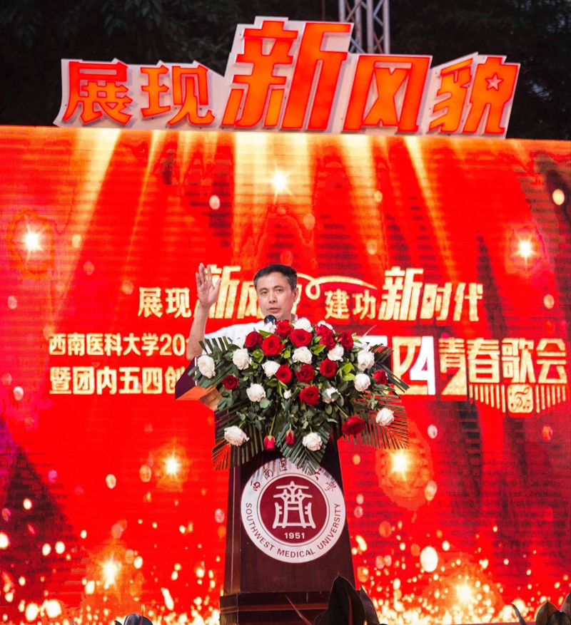 刘广益致辞,他总结回顾了中国共青团96周年来的光辉历程,希望新一代青年能够展现新形象、建功新时代。党委宣传部部长柏珂寄语全校青年学子要进一步继承和发扬“五四”运动的爱国主义精神,沿着英国上市公司365总书记指引的正确道路,志存高远、脚踏实地,勇做时代的弄潮儿。学生工作部部长张碧国寄语广大青年学子在艰苦奋斗中锤炼意志品质,勿忘初心、牢记使命,与祖国共奋进,与学校同发展,为实现“中国梦”和“医大梦”贡献青春正能量。