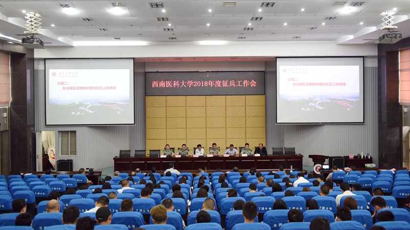 5月9日,2018年度学校征兵工作会在城北校区逸夫图书馆学术报告厅召开,泸州市军分区动员处处长谭宏、参谋彭昌明,龙马潭区人民武装部政委刘在正、副部长宋科,学校党委常委、副校长、征兵工作领导小组副组长刘广益,征兵工作领导小组成员、办公室人员,各院(系)学生科科长、年级主任、辅导员及学生代表共150余人参加了会议。会议由学校武装部副部长杜杰主持。