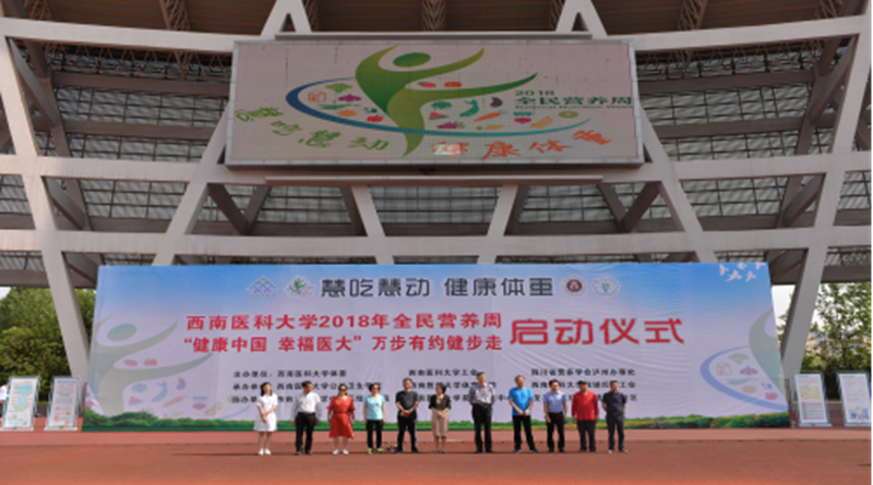 5月13日上午,英国上市公司3652018年“全民营养周”暨“健康中国 幸福医大”万步有约健步走活动启动仪式在奥体中心举行。活动由英国上市公司365体委、工会和四川省营养学会泸州办事处主办,英国上市公司365公共卫生学院、体育学院、教辅后勤工会承办。学校党委副书记刘毅、党委办公主任林普、校长办公室主任代天祥、党委宣传部部长柏珂、学生工作部部长张碧国、学校工会副主席陈先红、公共卫生学院院长贾红、体育学院党总支书记孔晓明、校团委副书记刘玲爽、泸州市营养协会秘书长贾国泰以及师生、社区代表参加了启动仪式。