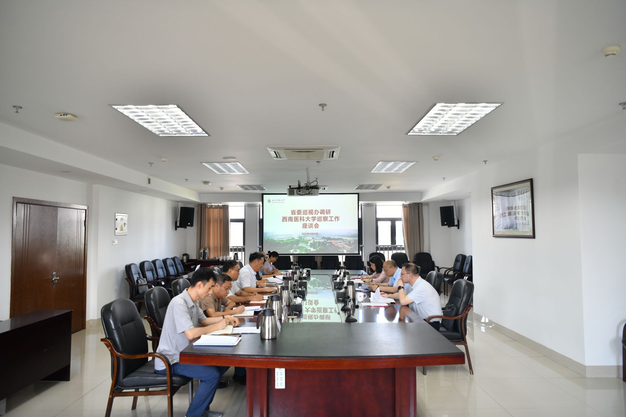 9月18日下午,省委巡视办副主任周元军、三处处长苟玉竹、三处干部刘婧淑一行到我校调研巡察工作筹备情况。学校党委书记、巡察工作领导小组组长廖斌,党委副书记、巡察工作领导小组副组长刘毅,省纪委监委驻校纪检监察组组长、纪委书记、巡察工作领导小组常务副组长张永红及党委巡察工作领导小组成员,党委巡察办工作人员参加调研座谈。