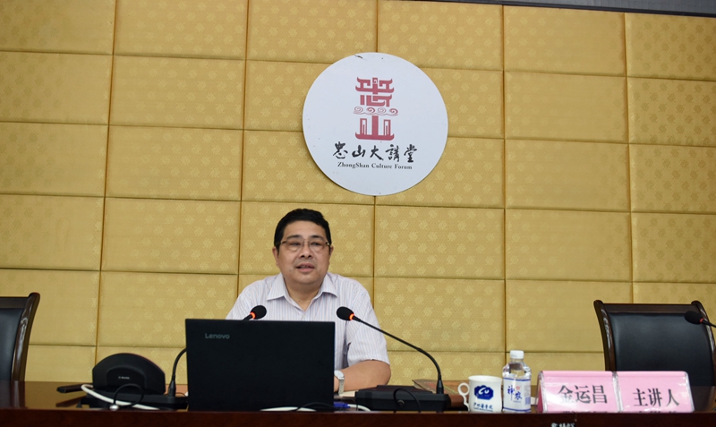 5月24日上午,由学校文化建设重点打造的高端人文类学术讲座品牌——忠山大讲堂在城北校区逸夫图书馆学术报告厅举办第三讲。故宫博物院古书画部原副主任、中国书法家协会理事、中央电视台《鉴宝》《寻宝》《国宝档案》等多档知名节目的鉴定专家金运昌先生应邀作了题为“紫禁城的书画”专题讲座。学校党委副书记刘毅,泸州市文联主席虞潜,学校原党委书记、现学校关工委常务副主任尹杰霖,泸州市文联书画爱好者以及学校师生代表近300人到场聆听。