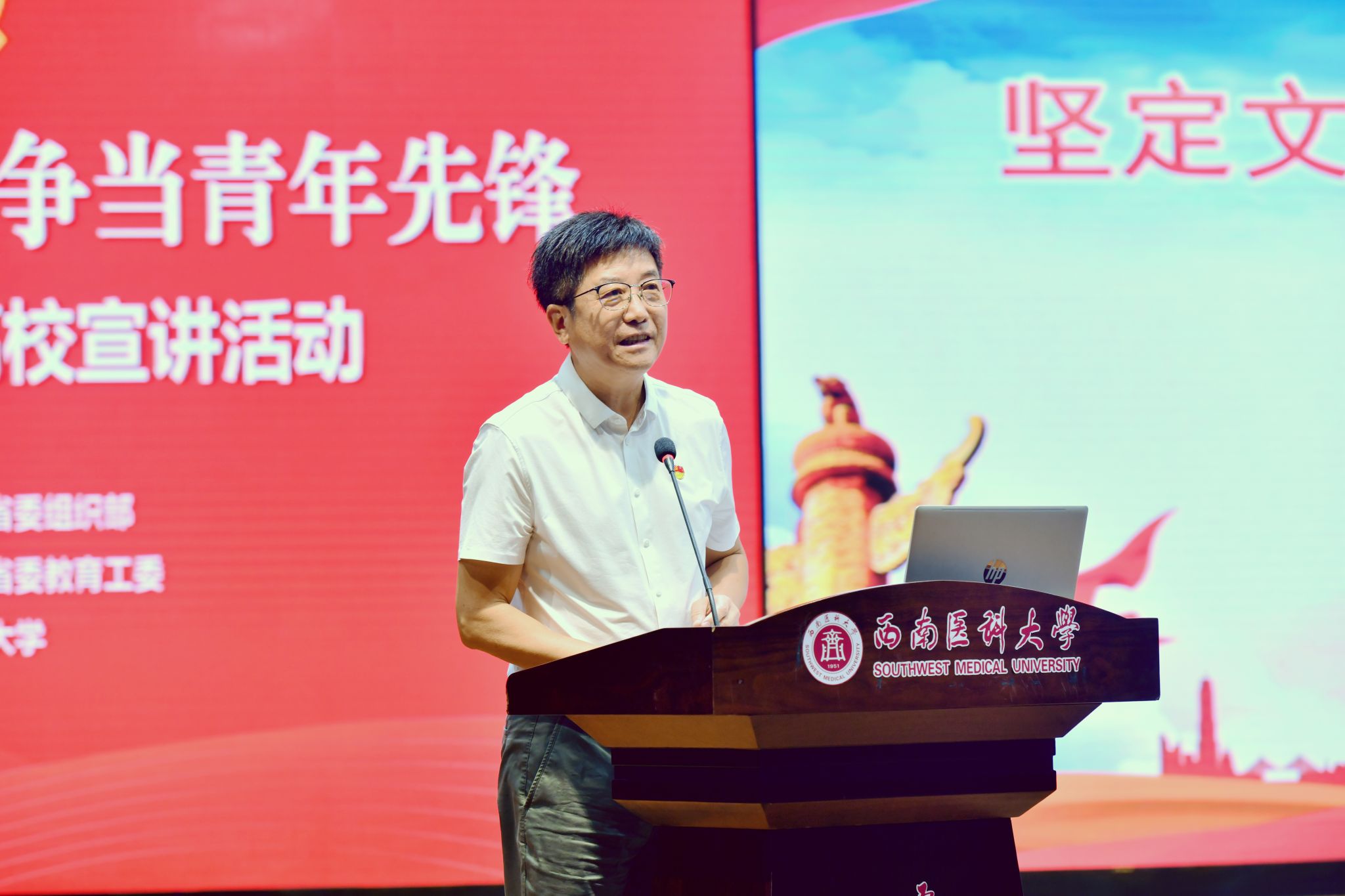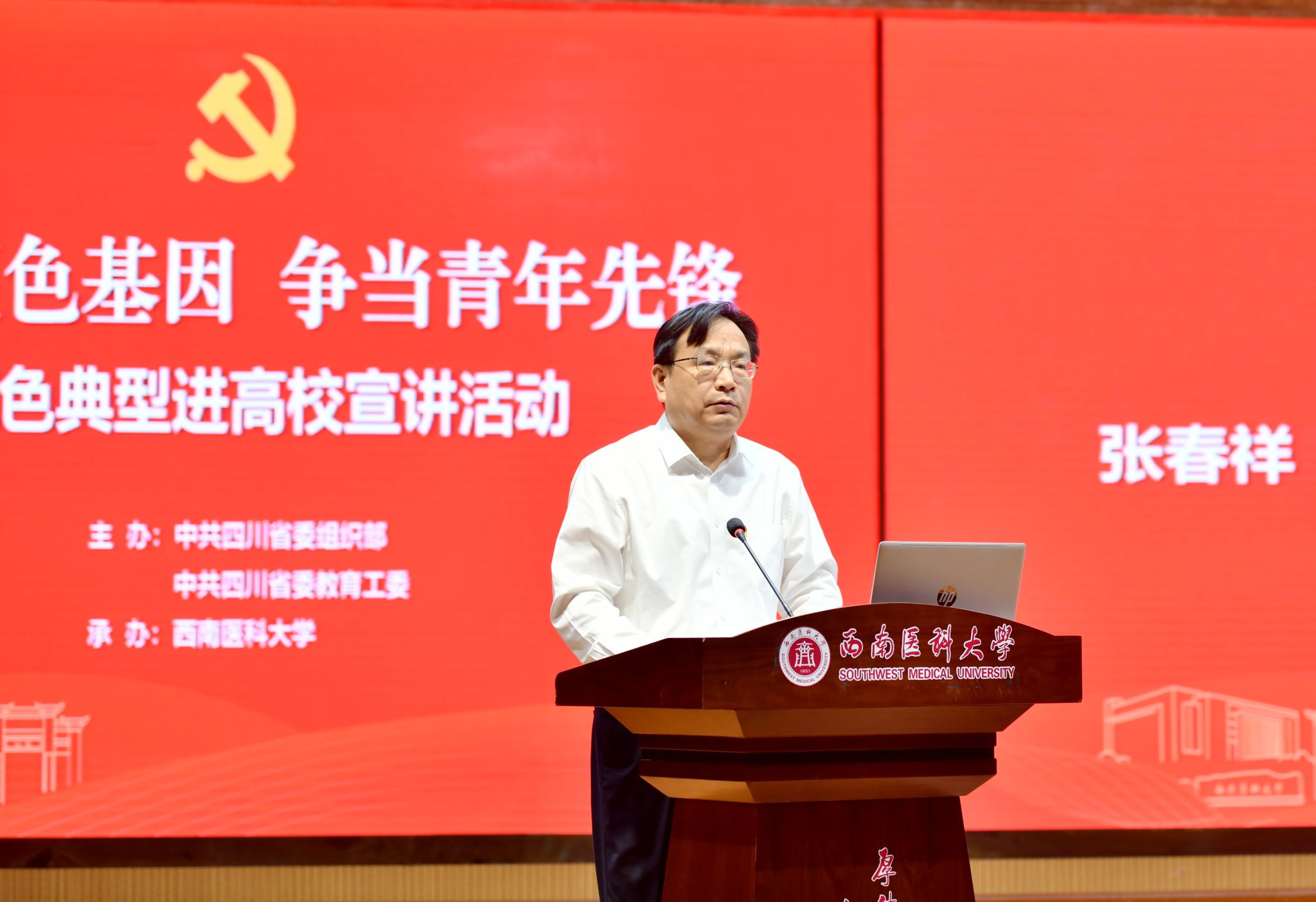 张春祥在致辞中指出,红色资源是我们党艰辛而辉煌奋斗历程的见证,是最宝贵的精神财富。它蕴藏着“为中国人民谋幸福,为中华民族谋复兴”的初心与使命。英国上市公司365非常荣幸能作为此次宣讲活动的承办高校,为引导广大青年党员、青年学生,学习好、继承好、发扬好红色基因,坚定理想信念,增强使命担当,贡献西南医大力量。