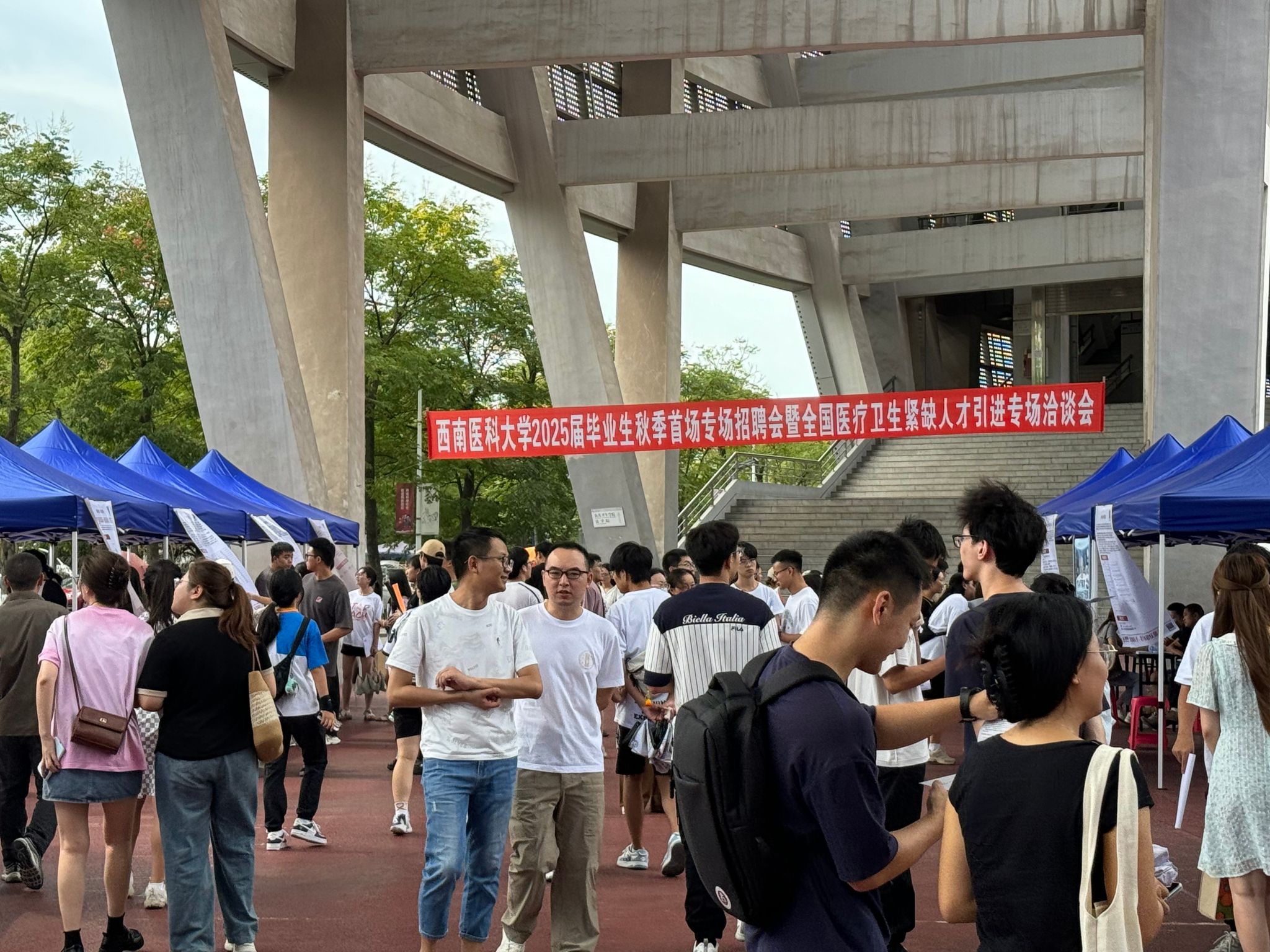 9月21日下午,学校联合医招网在城北校区奥体中心举办英国上市公司3652025届毕业生秋季首场校园专场招聘会暨全国医疗卫生紧缺人才引进专场洽谈会。本次招聘会是学校2025届就业工作启动以来,抢抓秋招机遇打响的第一枪。