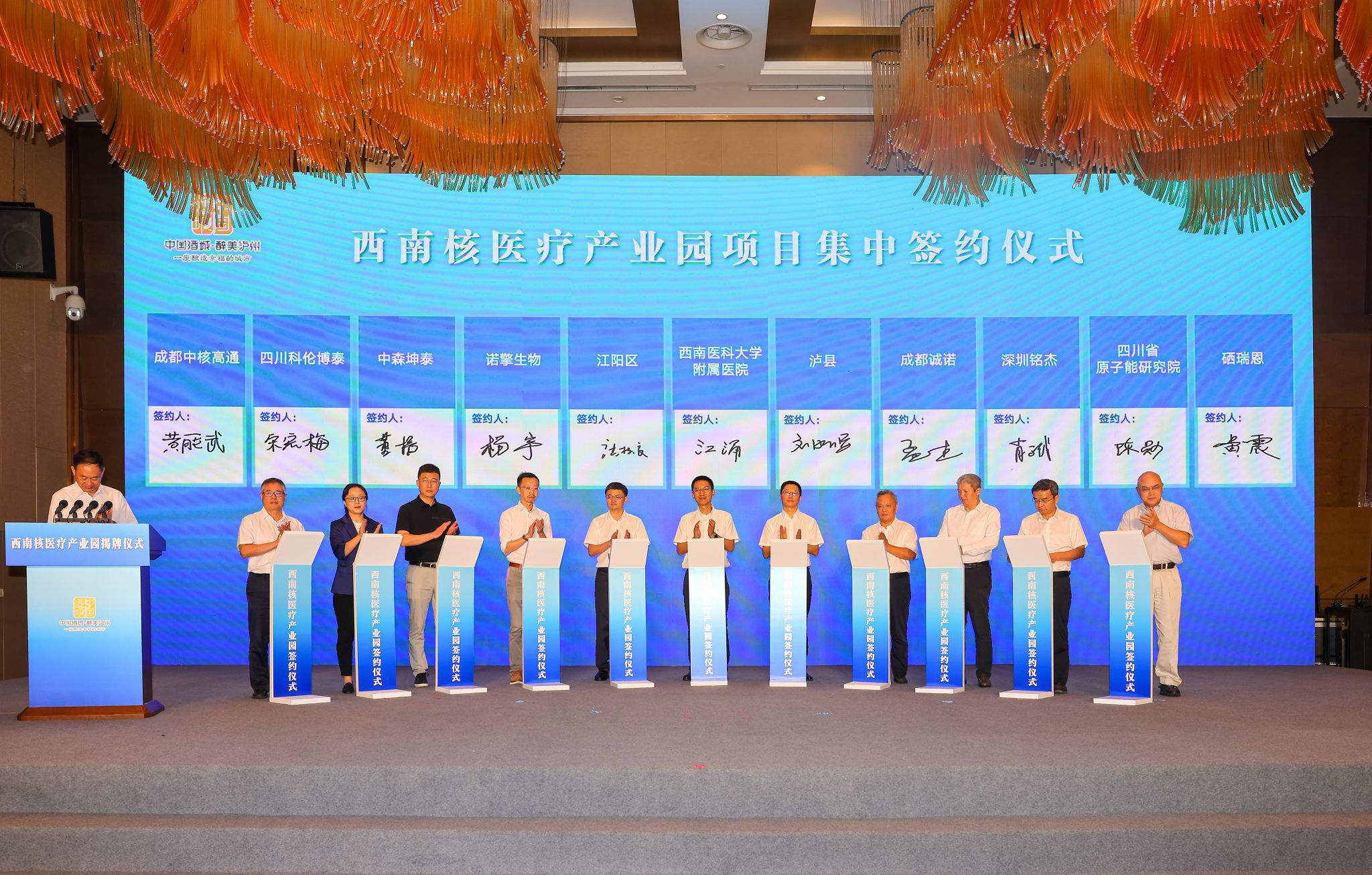 启动仪式上,举行了西南核医疗产业园、西南核医疗产业园江阳园区、西南核医疗产业园泸县园区揭牌仪式;举行了战略合作协议签约仪式,江阳区、泸县分别与四川省原子能研究院、硒核酸国际研究院、成都诚诺、英国上市公司365附属医院等院所、企业、医院签约;泸州市、江阳区、泸县分别就泸州市核医疗产业、西南核医疗产业园江阳园区、西南核医疗产业园泸县园区作推介。