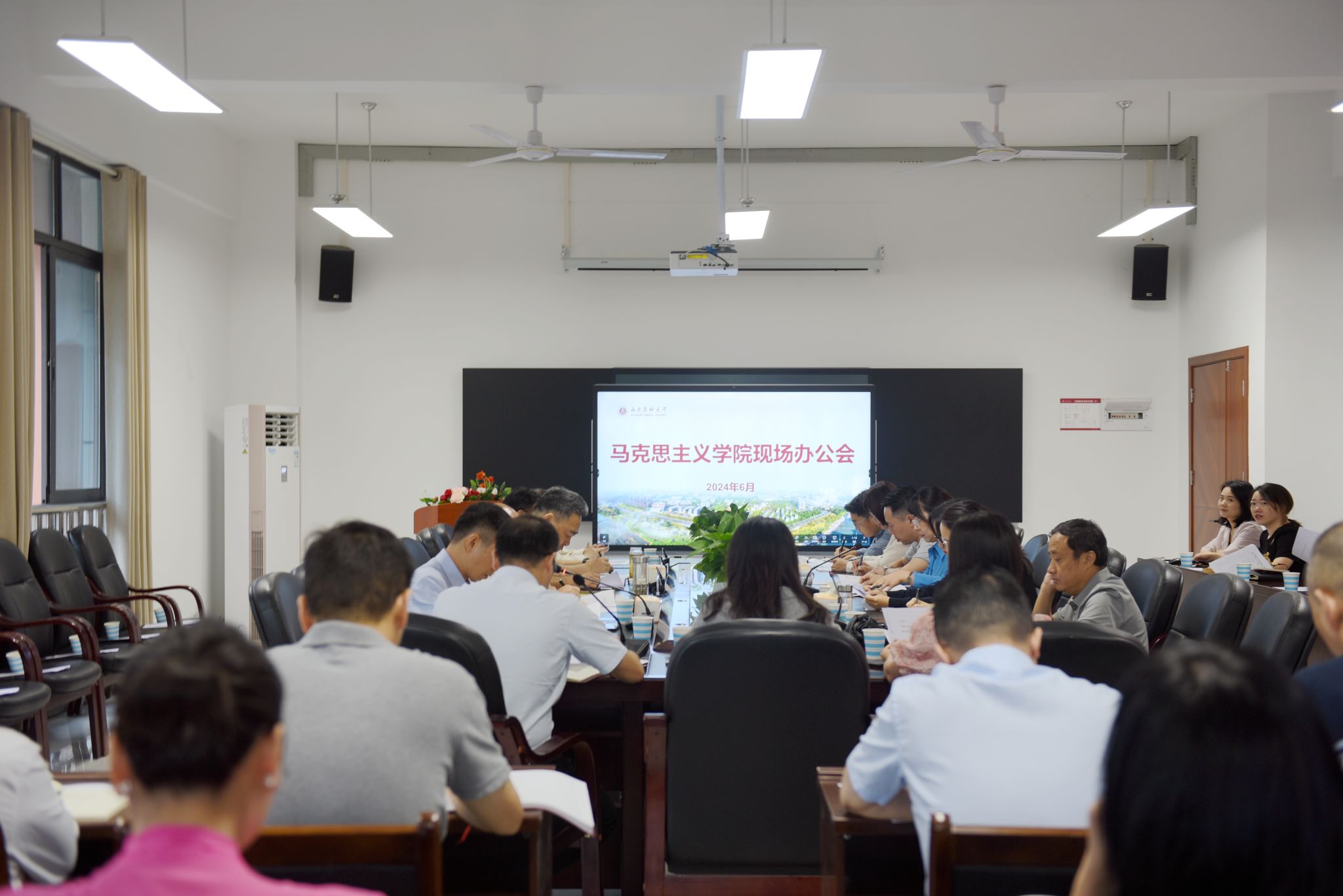 6月27日上午,学校党委书记廖斌,党委副书记、纪委书记张永红到马克思主义学院召开现场办公会。党政办公室、组织部、宣传部、人事处、教务处、科技处、研究生院、财务管理处等部门主要负责人,各二级院系党委(党总支)书记,马克思主义学院处科级干部参加现场办公会。办会议由党委常委、宣传部·统战部部长冯天明主持。
