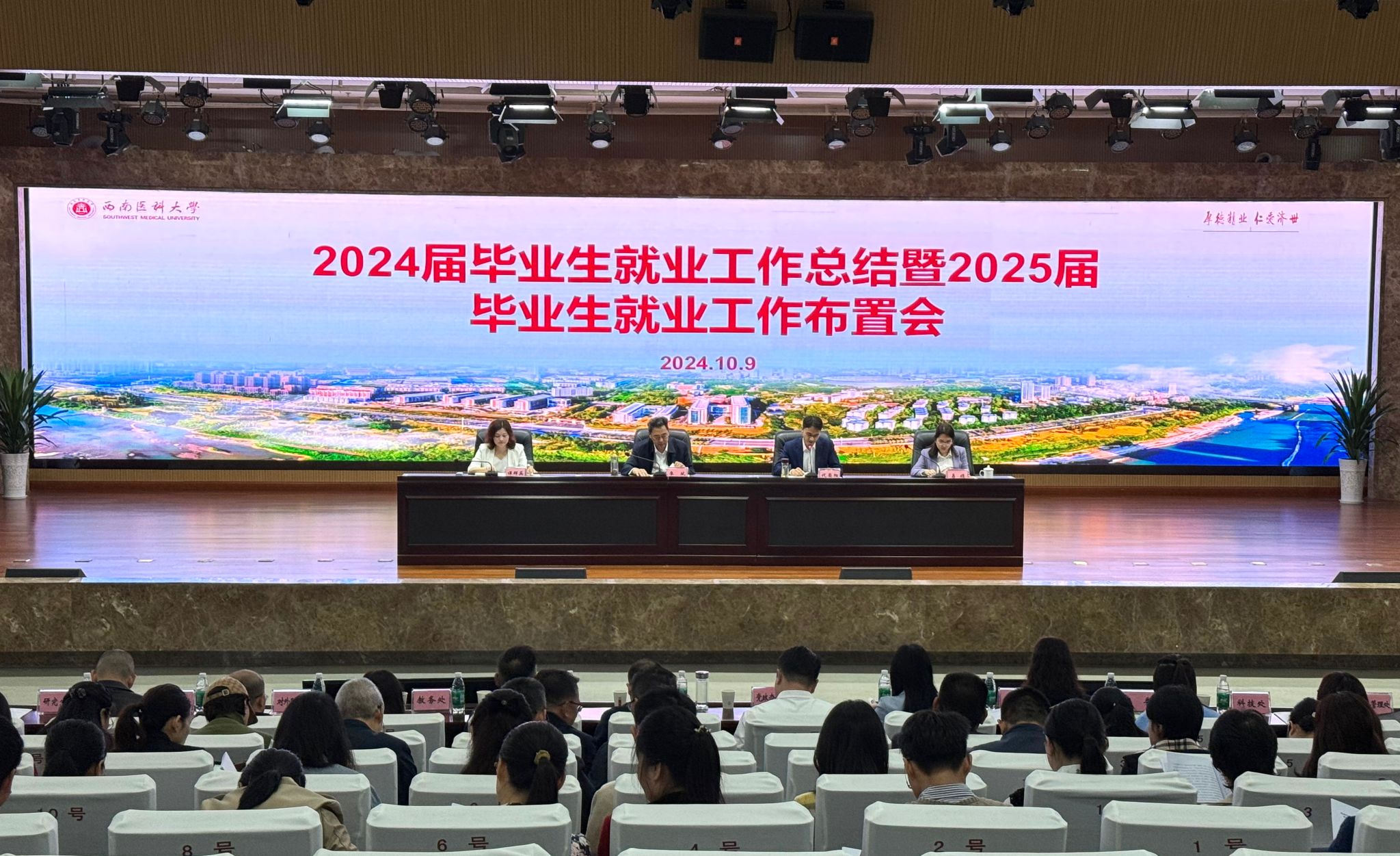 10月9日上午,学校在城北校区第一学术报告厅召开2024届毕业生就业工作总结暨2025届毕业生就业工作布置会。党委书记廖斌,党委常委、副校长代荣阳出席会议,相关职能部门领导,二级院系主要负责人,分管本科生和研究生领导、学科办和学生科科长、毕业年级辅导员等80余人参加会议。会议由代荣阳主持。