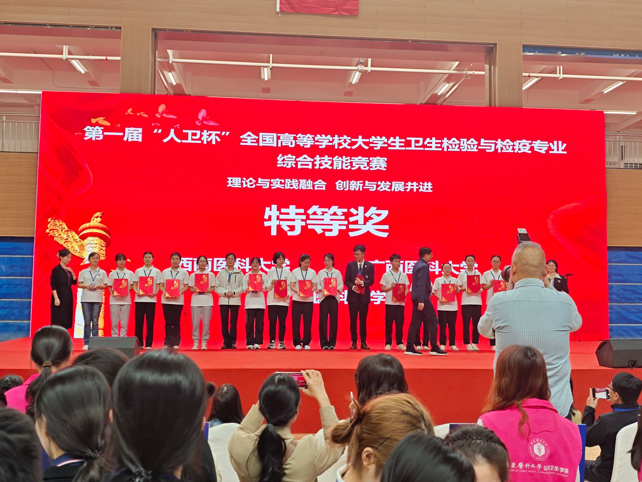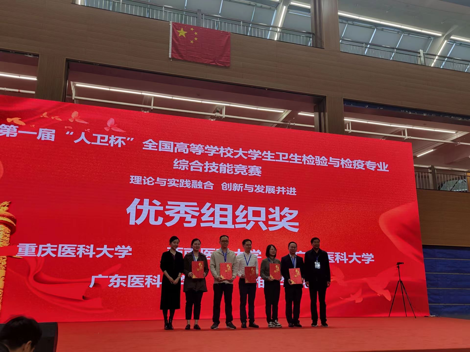 10月12日,第一届“人卫杯”全国高等学校大学生卫生检验与检疫专业综合技能竞赛决赛在重庆医科大学举行。学校公共卫生学院2020级卫生检验与检疫专业学生邵文艺、王子璇、沈明月、鞠洋、张夏(指导教师:杨艳、刘青青)参赛并斩获特等奖,学校获优秀组织奖。