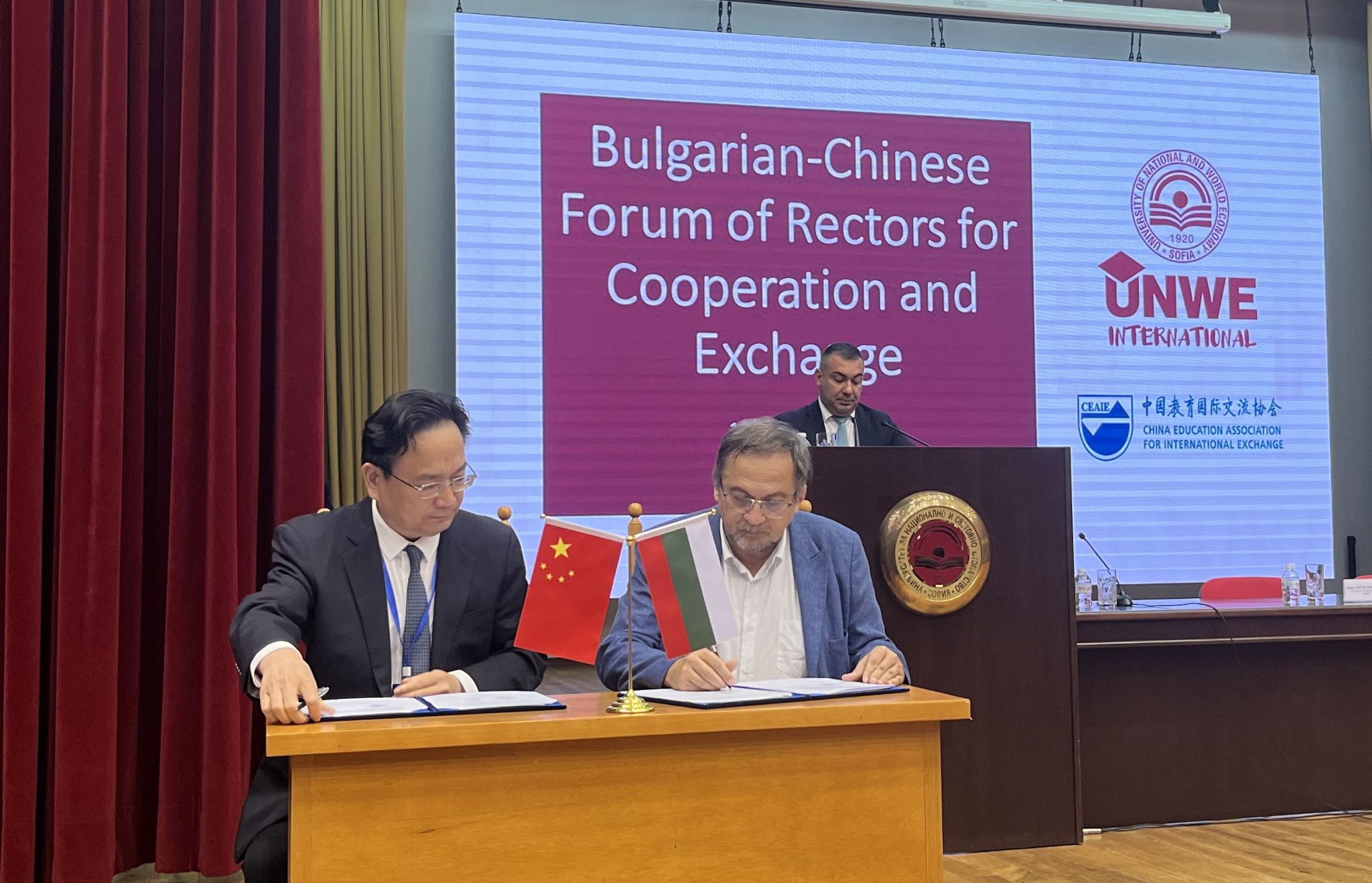 学校代表团在保加利亚期间,参加了第二届中国—保加利亚大学校长论坛。张春祥就中欧科研务实合作作了专题报告,并与普列文医科大学签署友好协议。保加利亚索非亚大学、大特尔诺沃大学、瓦尔纳医科大学等20余所高校代表、政府官员以及教育界专家学者齐聚一堂,交流研讨。中国驻保加利亚大使戴庆利、中国教育国际交流协会副秘书长傅博、保加利亚教育与科学部副部长尼古拉·维塔诺夫、保加利亚国家与世界经济大学校长迪米塔尔·迪米特罗夫、保加利亚大学校长会议主席米格莱娜·特梅尔科娃等嘉宾出席论坛并致辞。在保加利亚访问期间,学校代表团还到普罗夫迪夫农业大学和普罗夫迪夫音乐舞蹈美术学院交流,了解保加利亚农业、艺术等学科发展情况,拓展更多合作渠道。