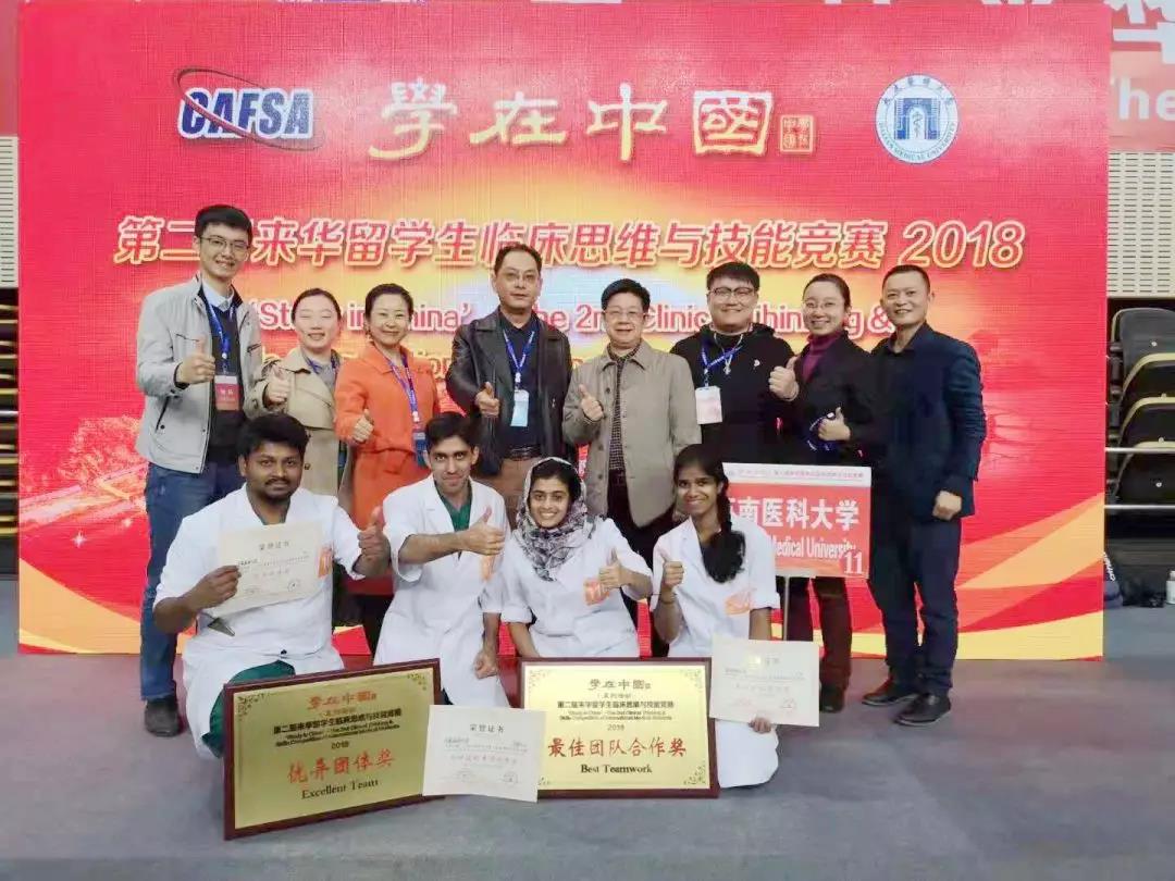 经过激烈角逐,由我校国际教育学院Aamir manzoor,Shahanas munavvira kundukandathil,Sai kiran kooneri,Veni jith四位留学生组成的英国上市公司365代表队以优异的成绩斩获团队奖中最高奖项:优异团队奖、最佳团队合作奖,并获得外科技能单项优秀奖。我校也是川渝两地唯一一个获得优异团队奖的学校。