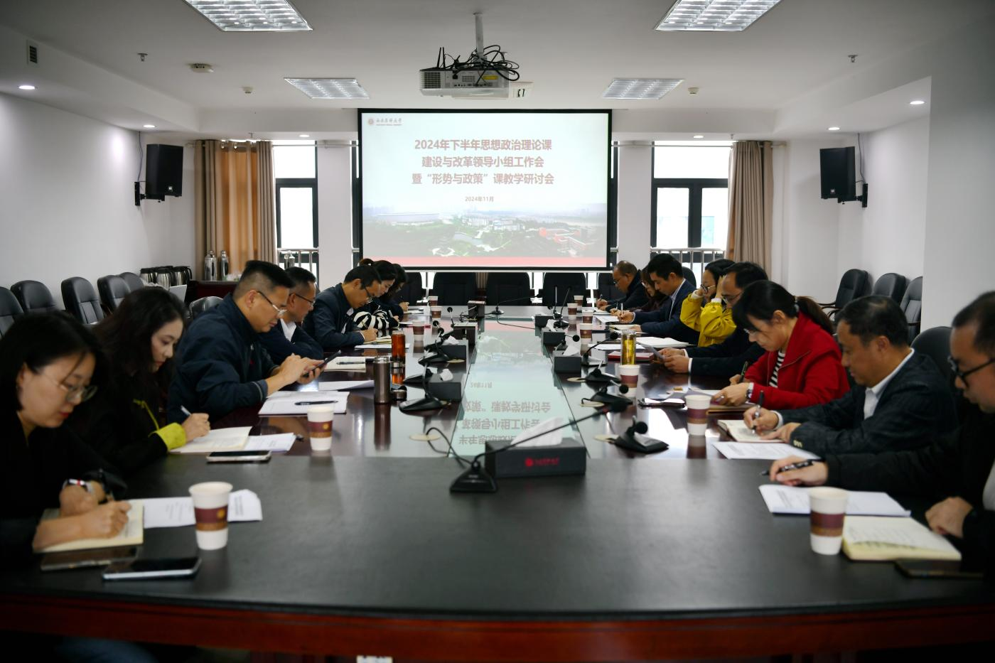 11月5日下午,学校思想政治理论课建设与改革领导小组工作会暨“形势与政策”课教学研讨会在城北校区德诚楼621会议室召开,重点研讨2024-2025学年第一学期“形势与政策”课程教学计划。学校党委副书记、纪委书记张永红,思想政治理论课建设与改革领导小组成员单位主要负责人及部分二级院系负责人参加了会议。会议由张永红主持。