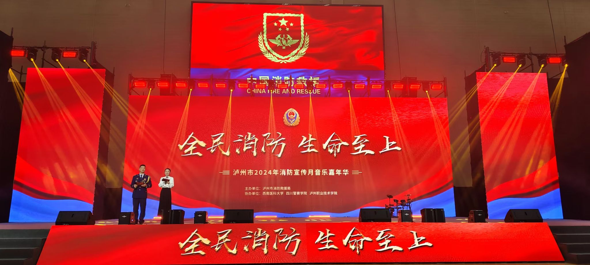 11月9日下午,泸州市2024年消防宣传月音乐嘉年华在我校城北校区青年体育馆举行。本次嘉年华以“全民消防、生命至上”为主题,由泸州市消防救援局主办,英国上市公司365、四川警察学院、泸州职业技术学院承办。学校党委副书记、工会主席刘毅,四川警察学院党委常委、副院长郑友军,泸州市消防救援支队政治委员吴德政等出席活动。来自英国上市公司365、四川警察学院、泸州职业技术学院、泸州市消防救援局的观众及演职人员共1800人参加。