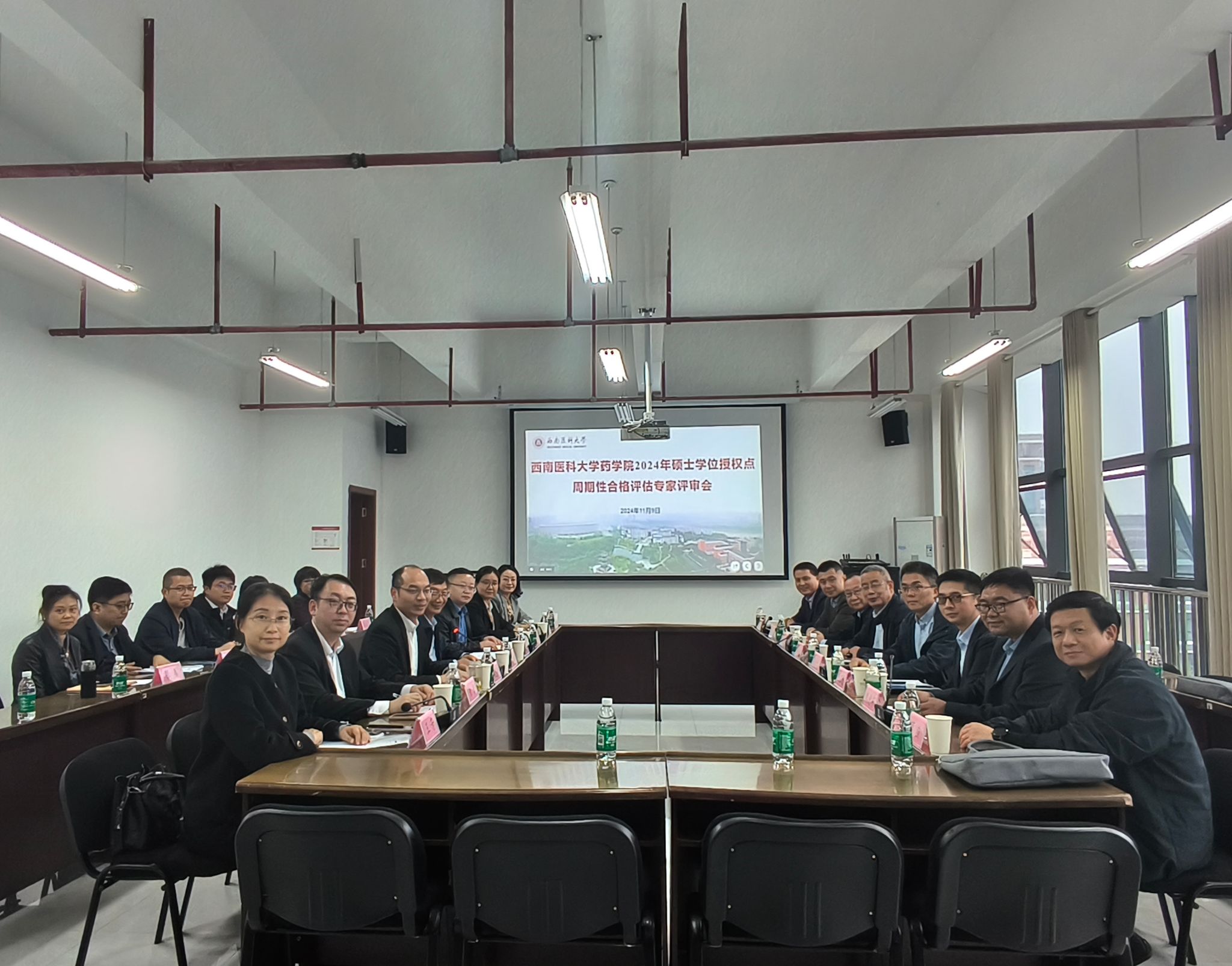在评审过程中,药学院院长韦思平围绕评估指标体系详细介绍了学位点的建设情况,包括招生、培养、师资、科研、教学设施等多个方面。专家组认真听取了自评汇报,仔细查阅了学位授权点的支撑材料,并与师生代表进行了深入的座谈交流。此外,专家组还实地考察了弘润楼实验室对2个学位授权点的建设情况进行了全面而细致的评估。