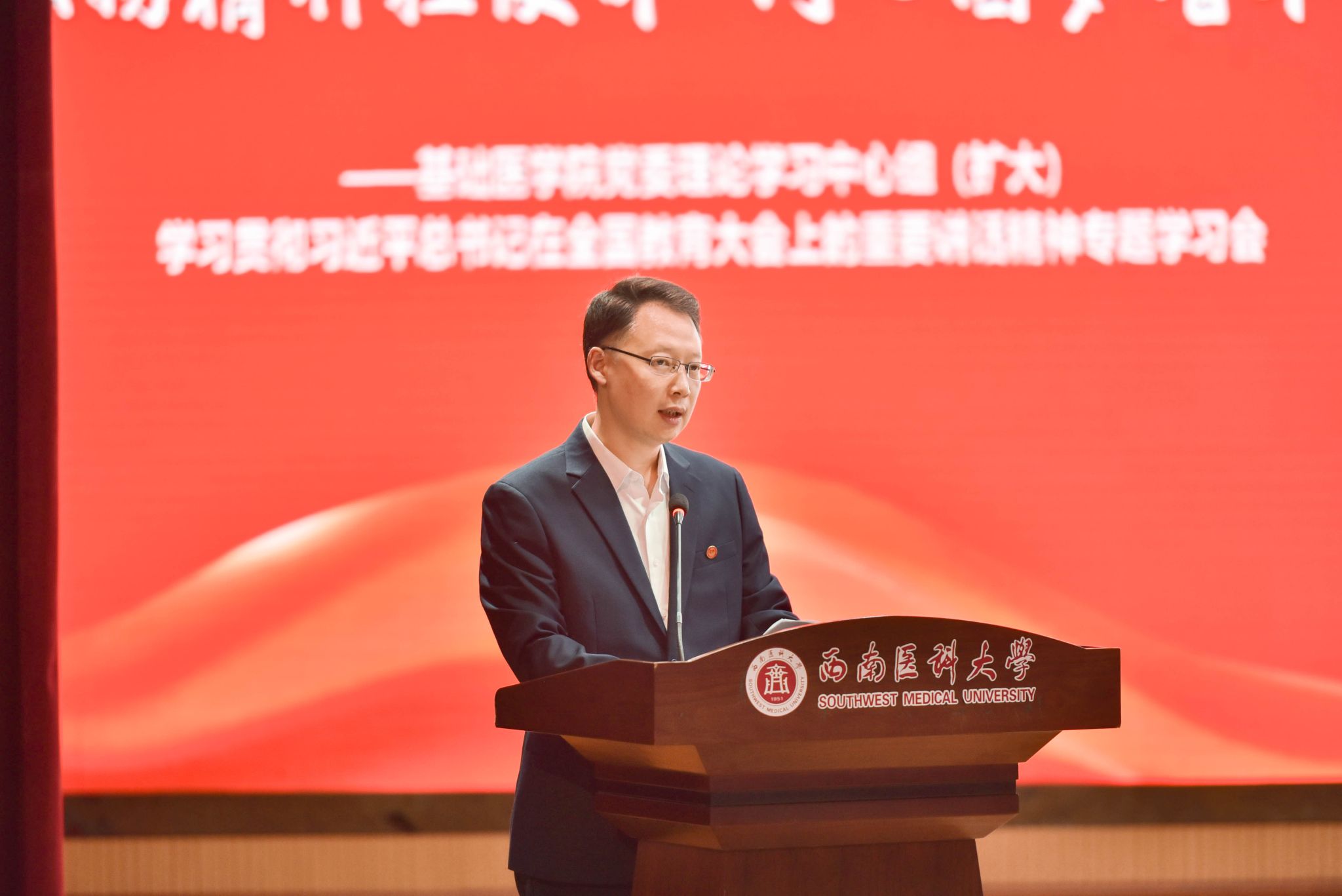 廖斌对本次中心组学习进行了总结点评。他对本次由党委宣传部·统战部主办、基础医学院党委承办的理论学习示范观摩活动给予了充分肯定,认为这次活动内容主题鲜明,研讨深入细致,安排规范有序,中心组成员率先垂范,发挥领学促学作用,达到了政治高度与思想深度的有机统一。他强调,全校各级党组织要坚持以上率下“学”在前,发挥中心组示范引领作用,在思想建党理论强党中务实功;坚持融会贯通“谋”在前,把握“全国教育大会”精神要义,在全面领悟上出实招;坚持求真务实“干”在前,把握理论学习效度,在全面转化落实上求实效,做到始终与党和国家同行、与人民同行、与时代同行,为建设特色鲜明的西部高水平医科大学、谱写中国式现代化四川新篇章贡献力量。