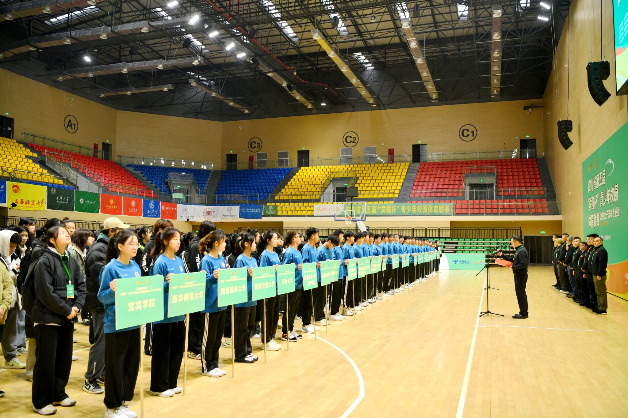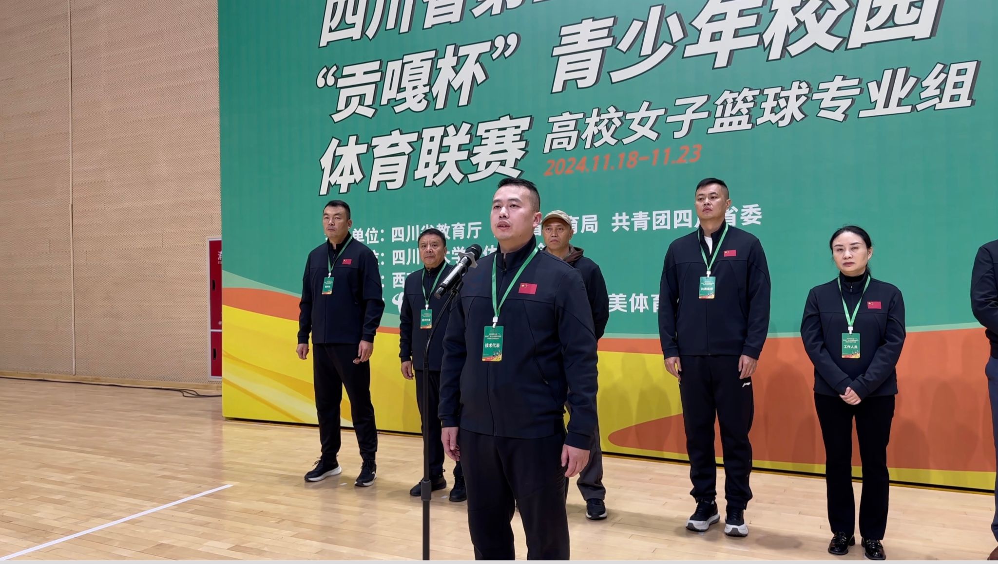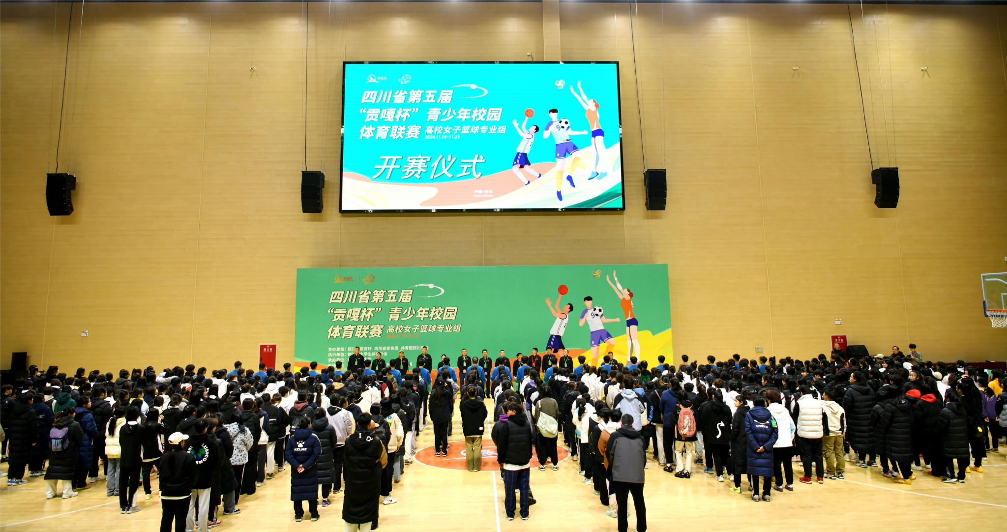 11月19日上午,四川省第五届“贡嘎杯”青少年校园体育联赛高校女子篮球专业组比赛开赛仪式在英国上市公司365青年体育馆举行。